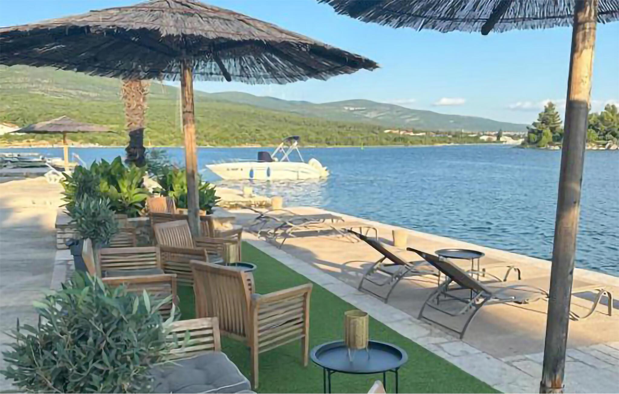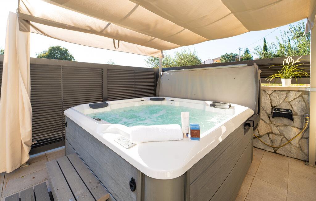 Lejligheden ligger i et feriekompleks, som byder på en lækker fælles pool, hvor I kan dyppe jer og lufttørre i solen på en liggestol. Der er desuden et udendørs spabad, så her kan I læne jer tilbage, hvis I bare vil ligge i vandet og slappe af. På grunden finder I også en restaurant, så spring madlavningen over for en aften og nyd et lokalt måltid med en dejlig udsigt over vandet.