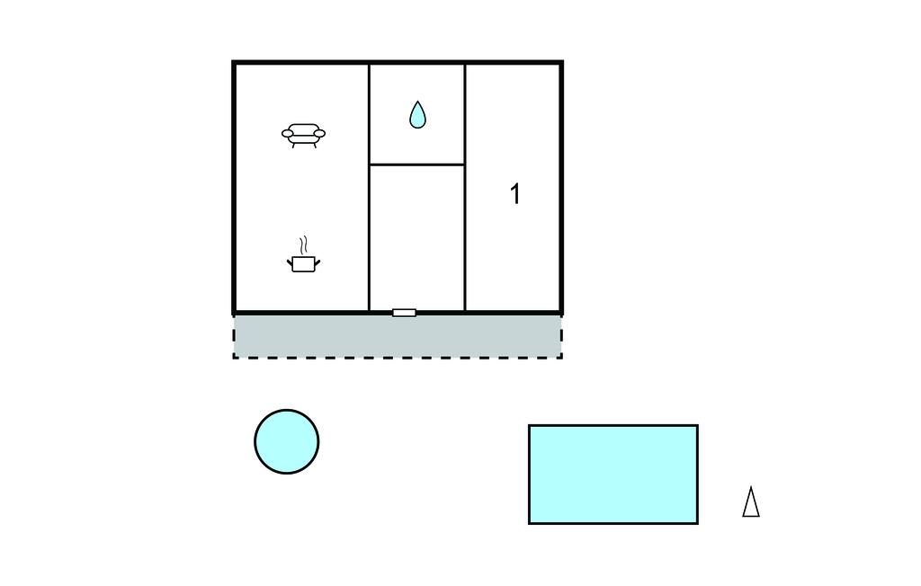 Opholdsstue/køkken 30m2 - 2 Sovepladser. (Sofa, madras eller lignende).