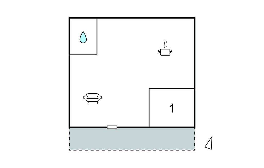 Opholdsstue/køkken - 2 Sovepladser. (Sofa, madras eller lignende).