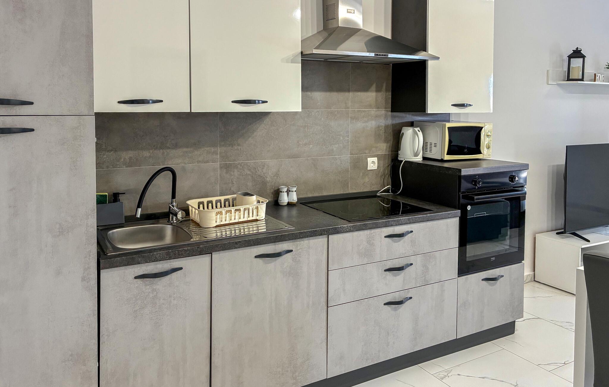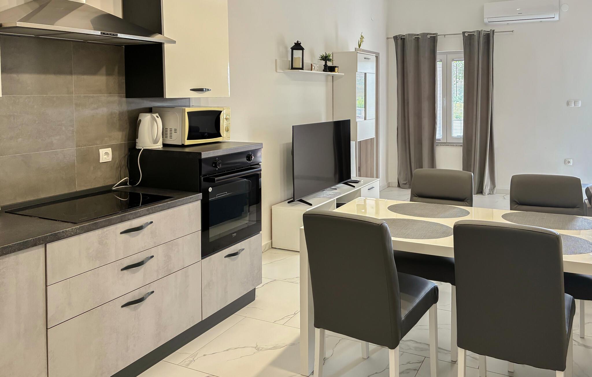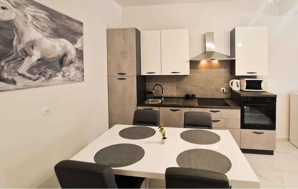 Denne moderne lejlighed i stueetagen tilbyder jer et komfortabelt feriested, mens I udforsker de mange seværdigheder omkring Zadar. Forkæl familien med kulinariske lækkerier, nyd den kølige, friske atmosfære under afslappede måltider, og stream en spændende film, mens I slapper af på sofaen efter en lang dag.