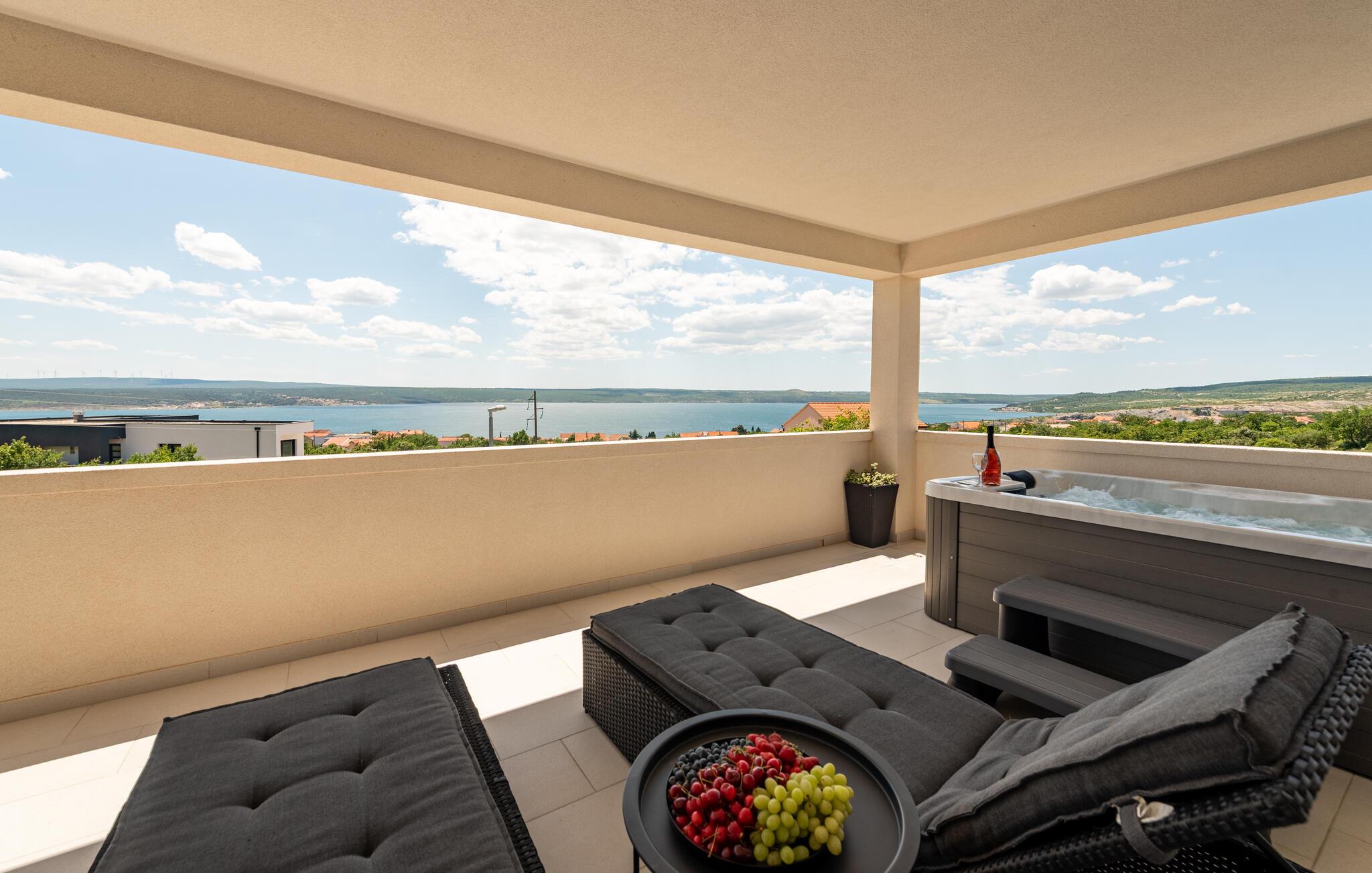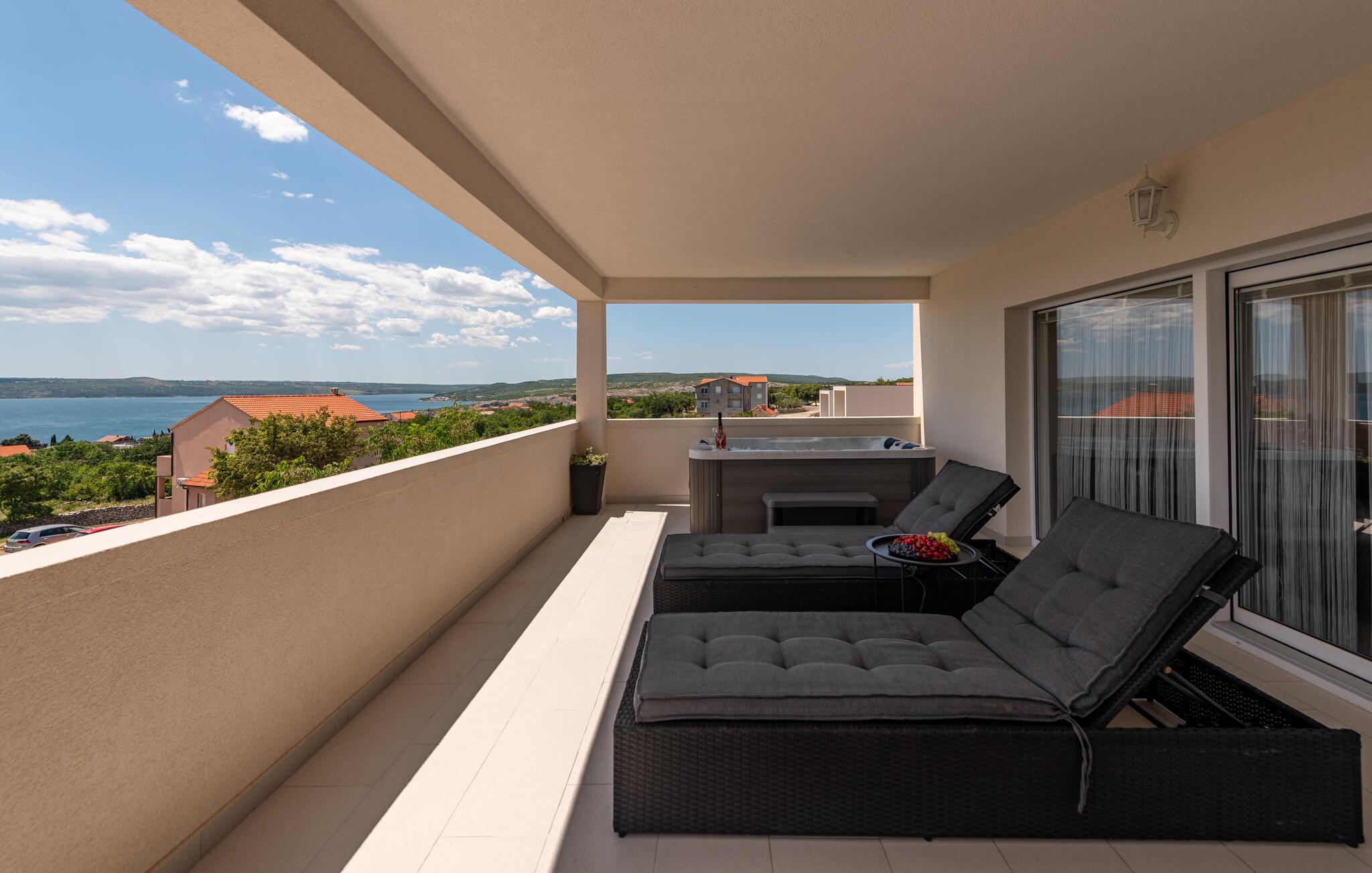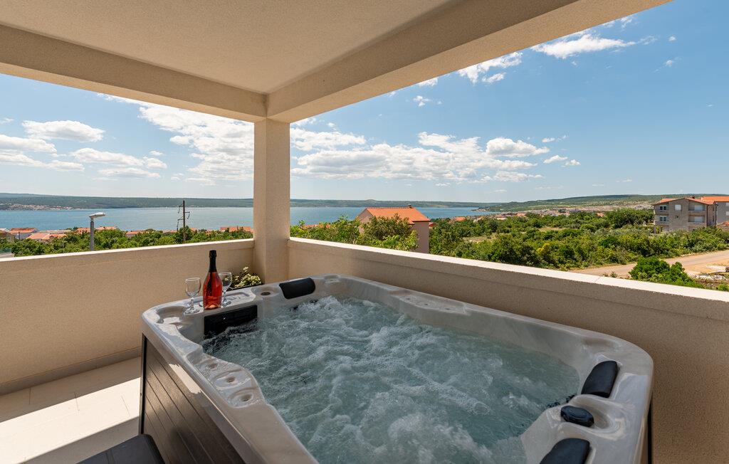 Velkommen til denne moderne lejlighed, hvor I får adgang til spabad, fælles pool og en smuk panoramaudsigt over Novigrad-havet.