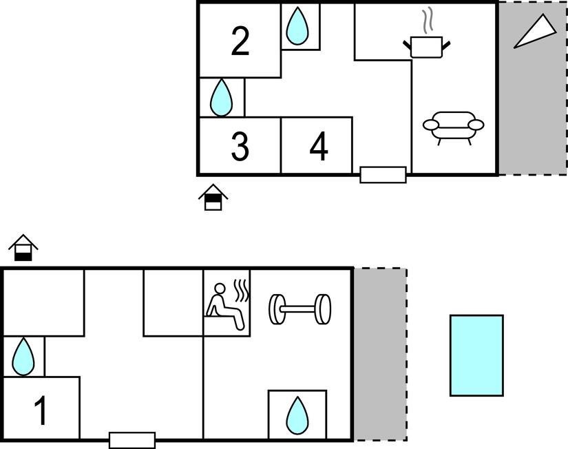 Opholdsstue/køkken 40m2 - 1 Soveplads. (Sofa, madras eller lignende).
