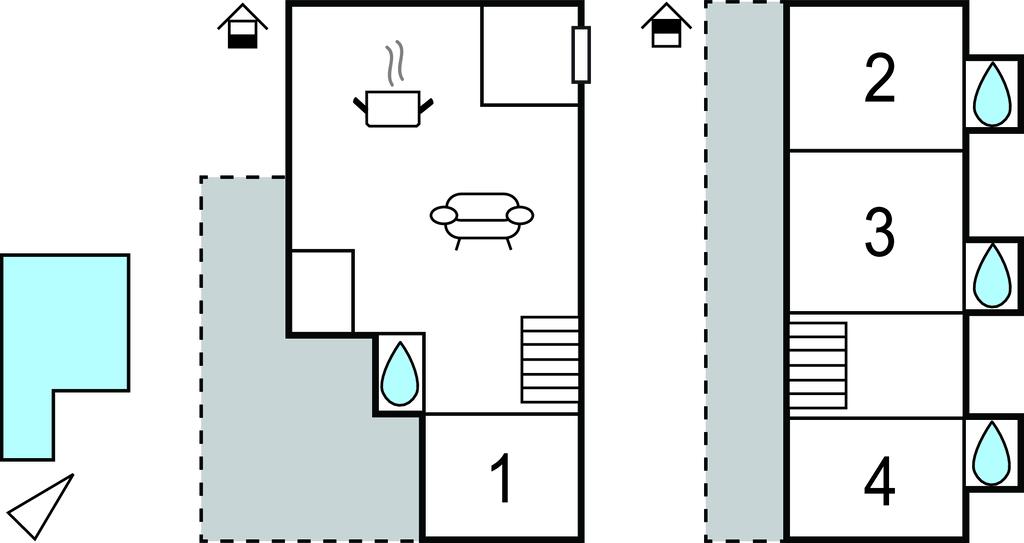 Badeværelse 5m2 (nr. 1) - WC. Varmt og koldt vand. Bruser