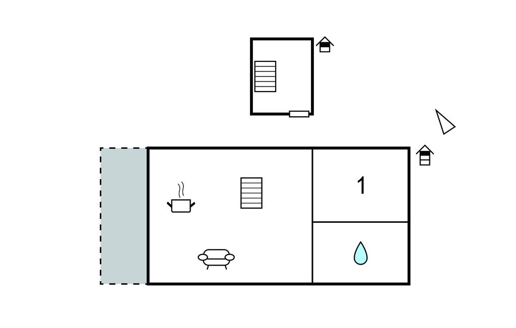 Opholdsstue/køkken 45m2 - 2 Sovepladser. (Sofa, madras eller lignende).