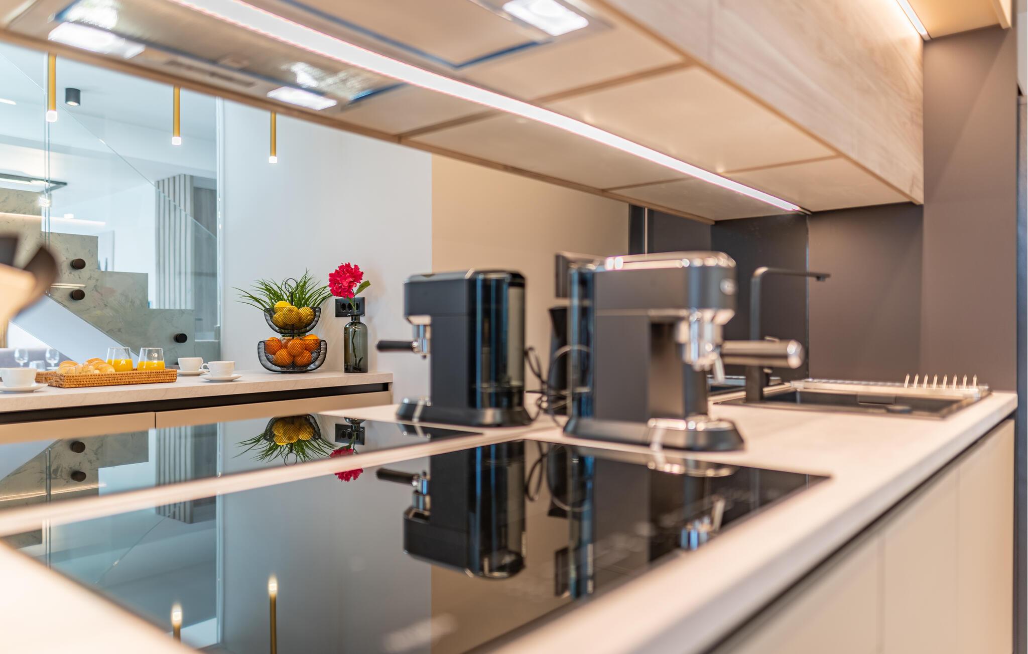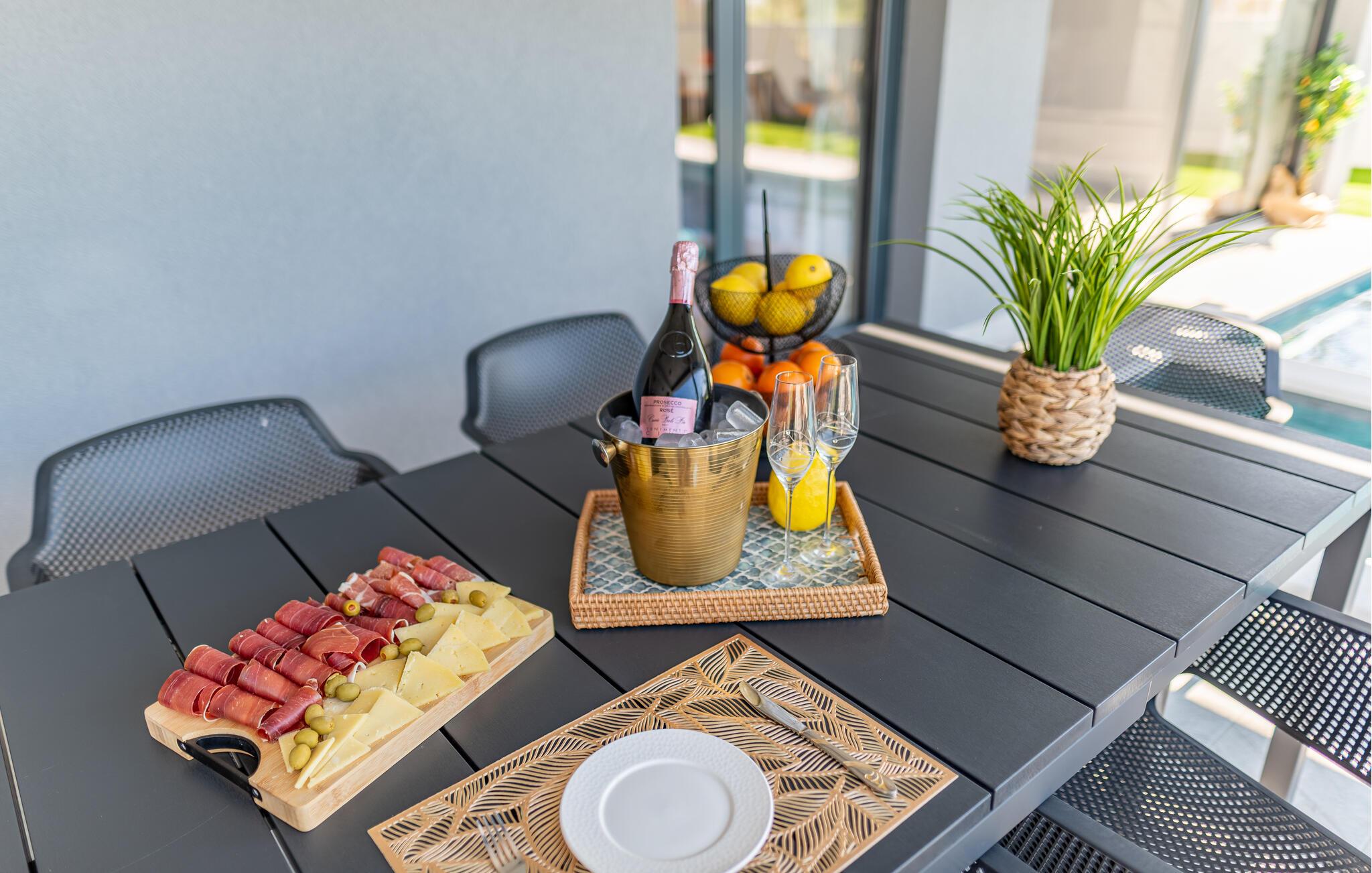 Begynd dagen med at tilberede en lækker morgenmad i køkkenet og tag maden med ud på altanen eller terrassen, hvor I kan nyde solen og tage dagens første dyp i poolen. Til huset hører et veludstyret udekøkken, hvor I kan tilberede familiens livretter på de smukke sommerdage. Ingen kommer til at kede sig her, og i løbet af dagen kan I duellere ved bordtennisbordet og holde formen ved lige i fitness-området, inden I tager på tur.