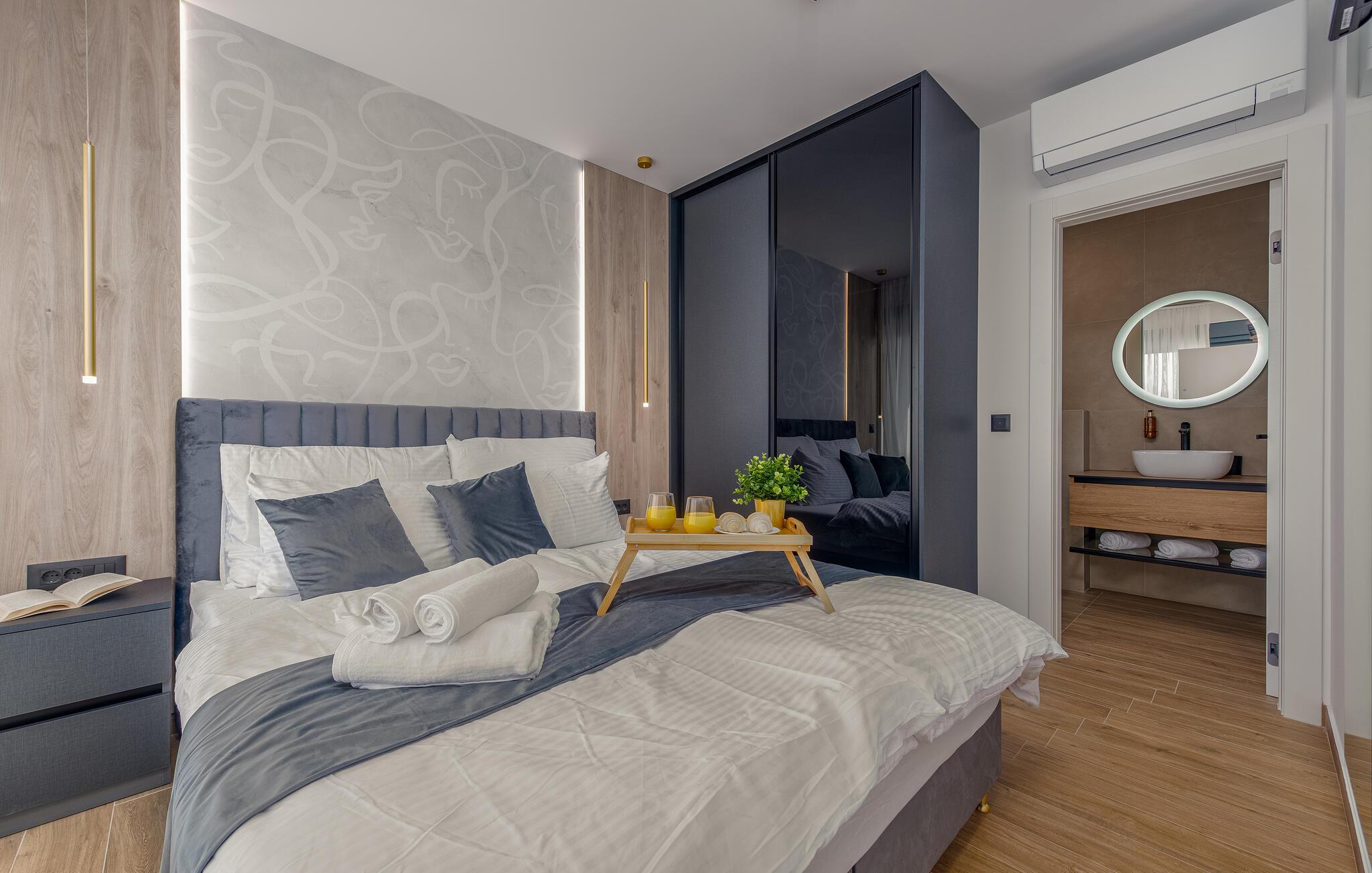 I denne rummelige drøm af et feriehus får I alt, I behøver til et fantastisk ophold med dem, I holder af. Huset er fordelt over to etager, og over hele linjen emmer indretningen af kvalitet, komfort og moderne faciliteter, der gør jeres feriegøremål og madlavningen til en leg. Soveværelserne har eget badeværelse, så det er den perfekte bolig for jer, der gerne vil rejse som større flok, uden at give køb på privatlivets fred.