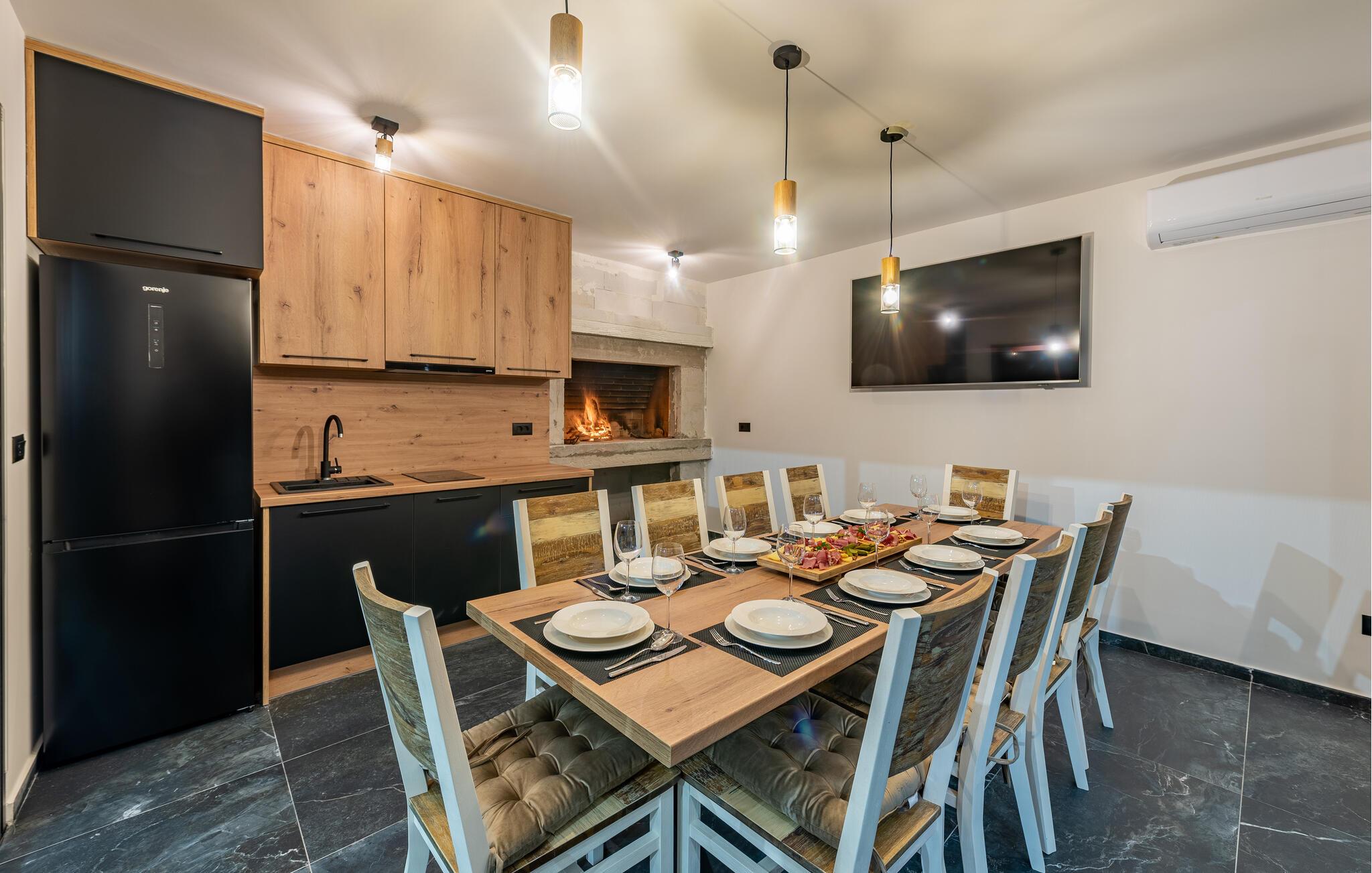I kommer ikke til at kede jer her. Nyd godt af det varme klima og bad i solens stråler og supplér med friske dyp i poolen i løbet af poolen. Den er oplyst og kan sågar benyttes om aftenen, hvis det kunne friste. Skal I gøre det ekstra godt for jer selv, kan I glide ned i spabadet på første sal og nyde den gode udsigt. Dette storslåede hus er det perfekte valg for jer, der kan lide at være aktive og besidder et veludviklet konkurrencegen. I kan nemlig udfordre hele flokken til en fodboldkamp på jeres egen bane, inden I begynder at kræse om livretterne ved murstensgrillen i udekøkkenet. Om aftenen kan I trække indenfor og købe snacks til den helt store filmaften i de behagelige siddeområder, mens I lægger planer for de kommende dage.