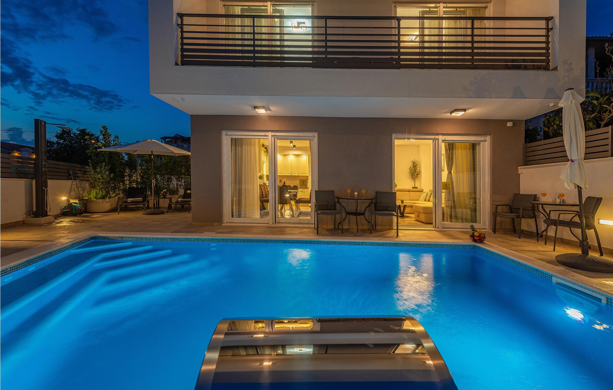 Dette store feriehus ligger i et roligt boligområde i nærheden af Zadar. Glæd jer til at slappe dejligt af i solen på den nydelige tagterrasse med en fantastisk udsigt. Udespa, pool og sauna indbyder til rendyrket feriewellness, og stilfuld indretning fuldender den fantastiske boligoplevelse.
