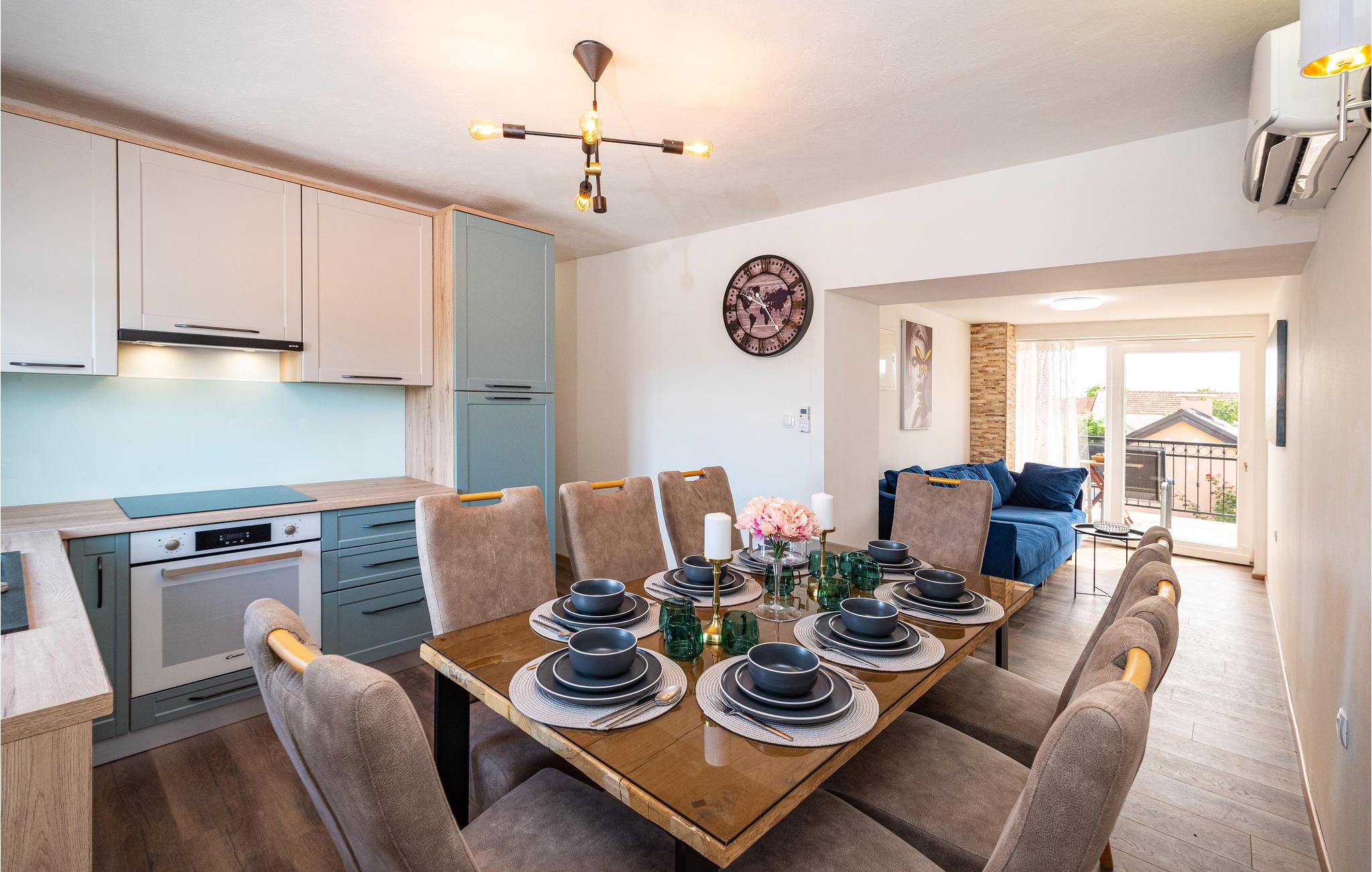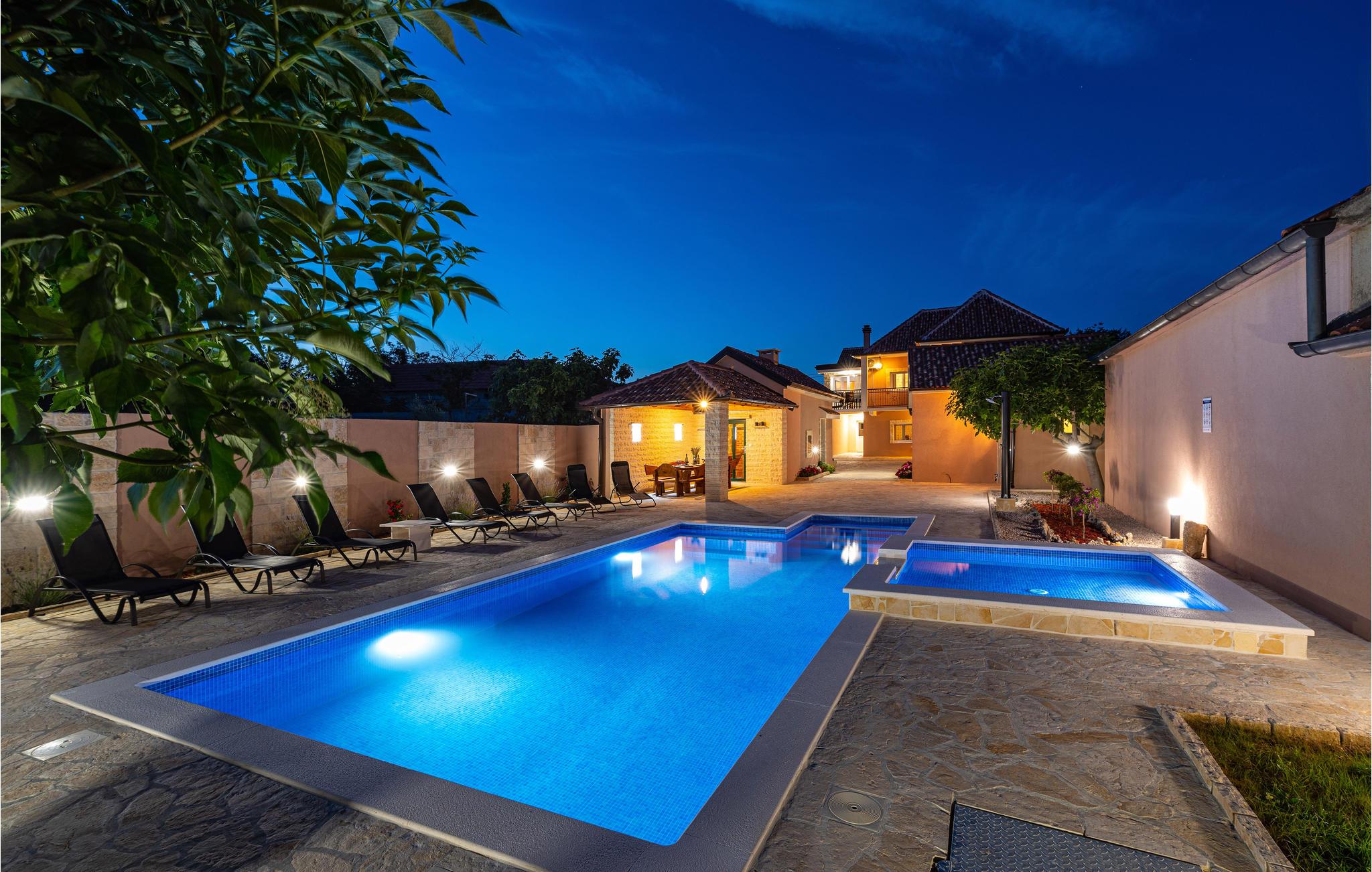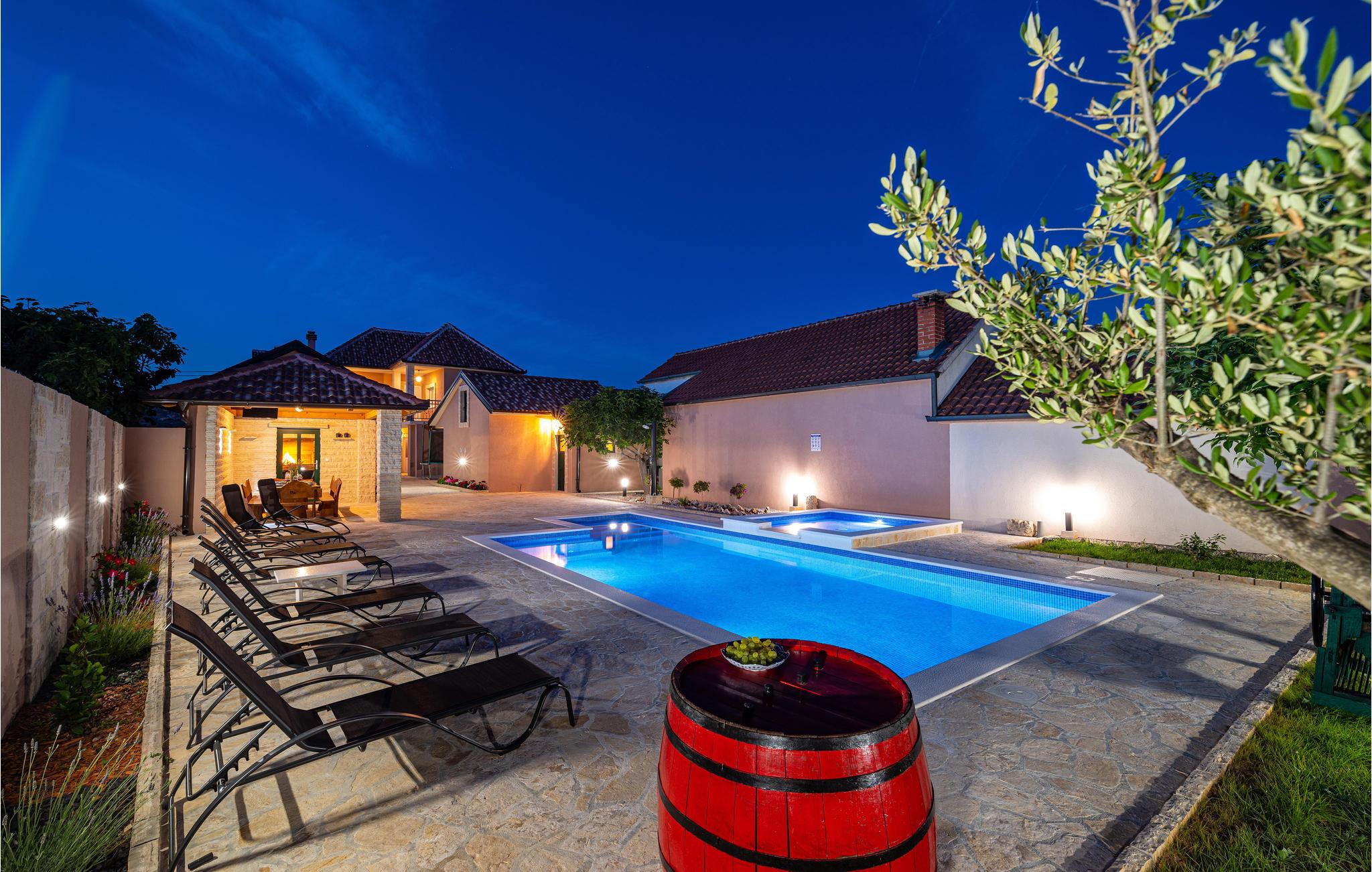 Hvis du elsker middelhavssolen, stilfuld hygge og hygge, er dette indbydende hus det rigtige valg for dig. Beliggende mellem Zadar og Sibenik i baglandet, byder dit feriehus dig velkommen med en harmonisk atmosfære. Frem for alt vil du elske området foran huset, som har en stor, opvarmet pool og grill med en smuk overdækket spiseplads.