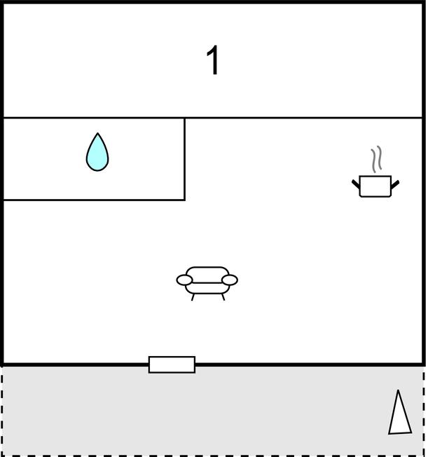 Opholdsstue/køkken 23m2 - 2 Sovepladser. (Sofa, madras eller lignende).