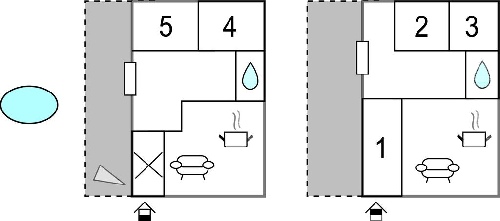 Badeværelse 5m2 (nr. 1) - WC. Varmt og koldt vand. Bruser