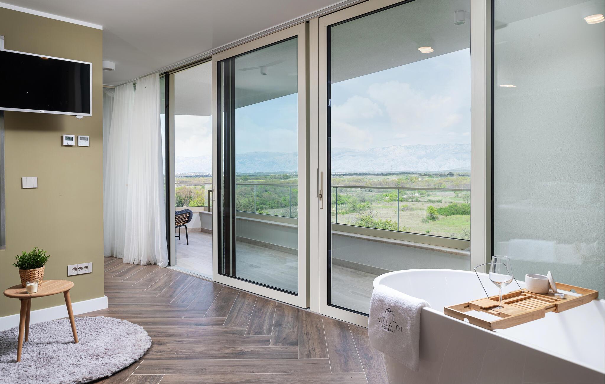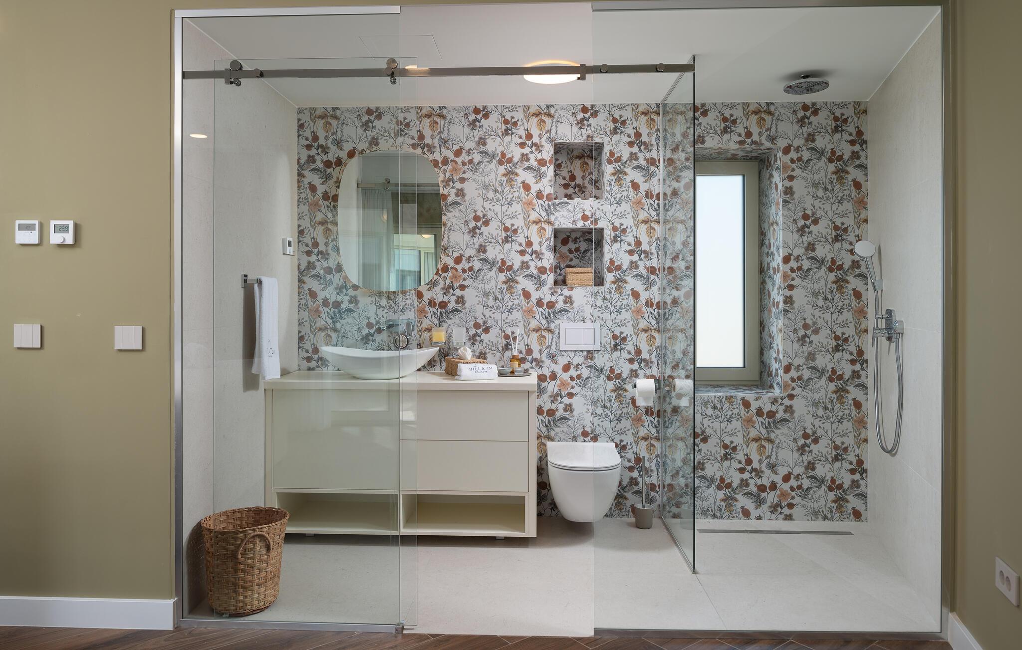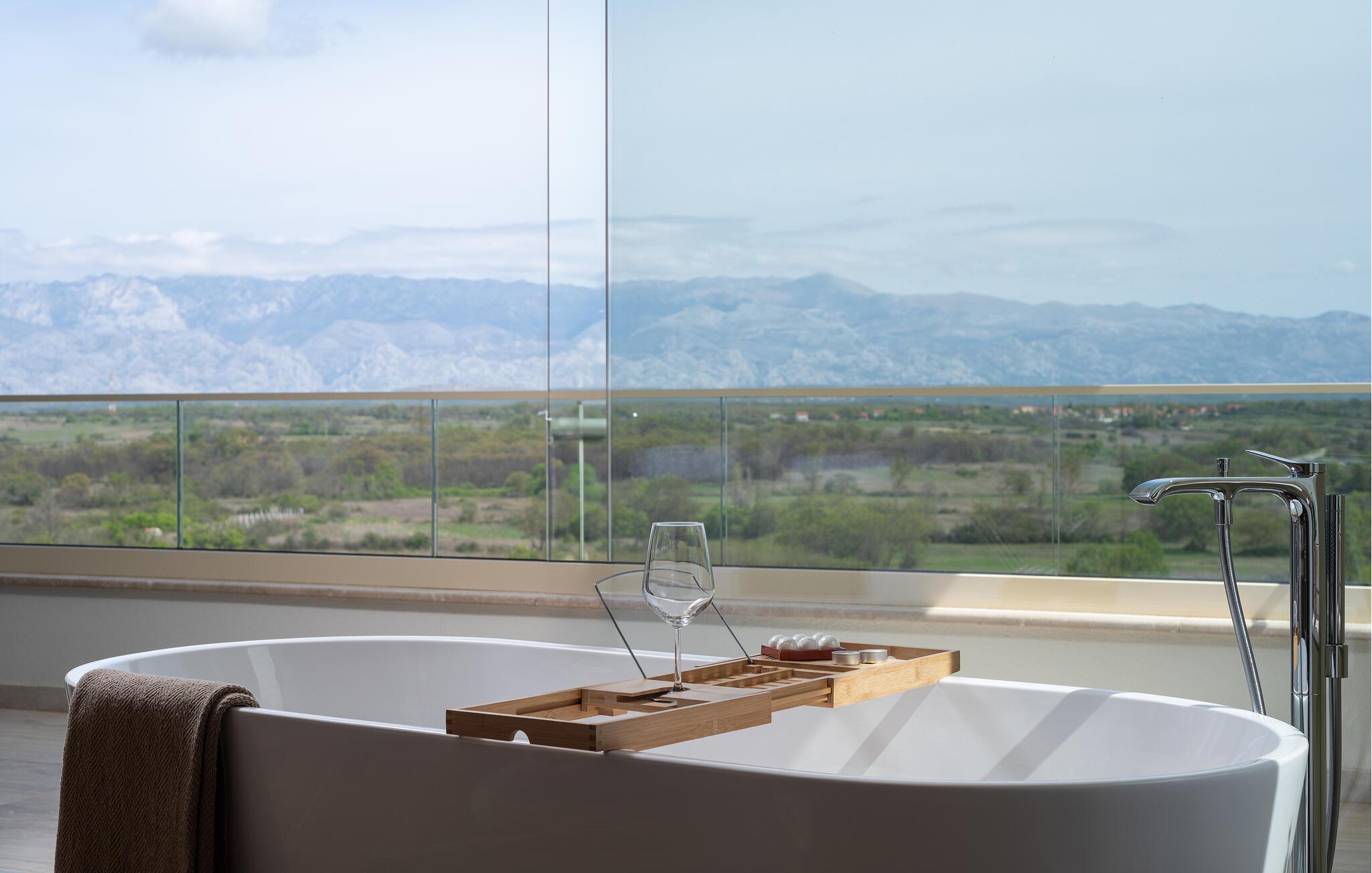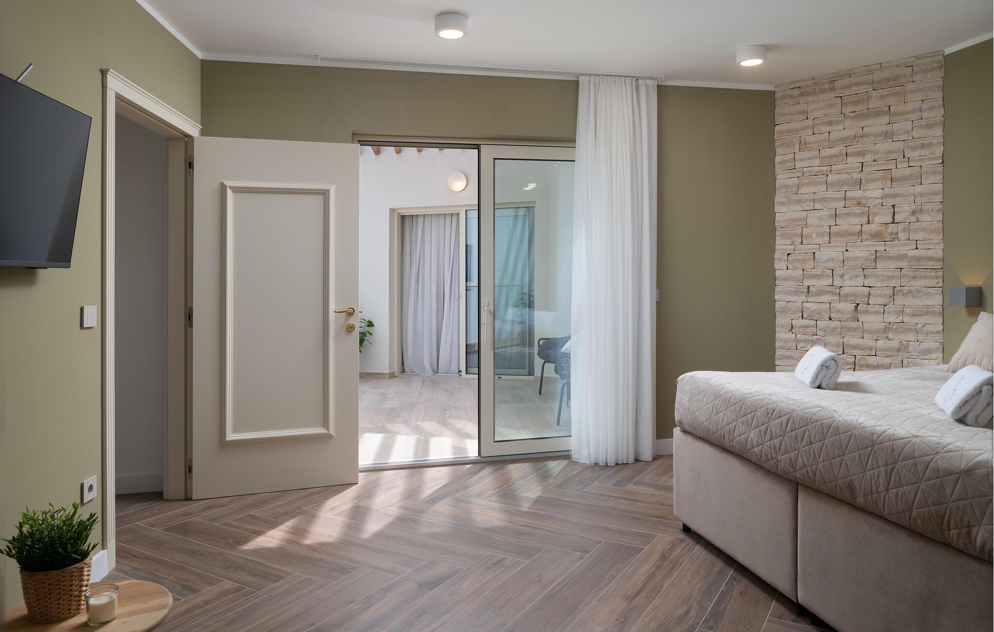 Dette moderne hus ligger i rolige omgivelser og byder jer velkommen med sin spændende arkitektur, der afspejler stilen fra de lokale kirker. Stilfulde designermøbler, natursten og varme trænuancer skaber en elegant, men indbydende atmosfære indenfor, der får jer til at føle jer hjemme. Det rummelige spa-område med sauna og spabad tilbyder den perfekte afslapning, og I kan nyde hyggelige aftener i villaens konoba (taverna).