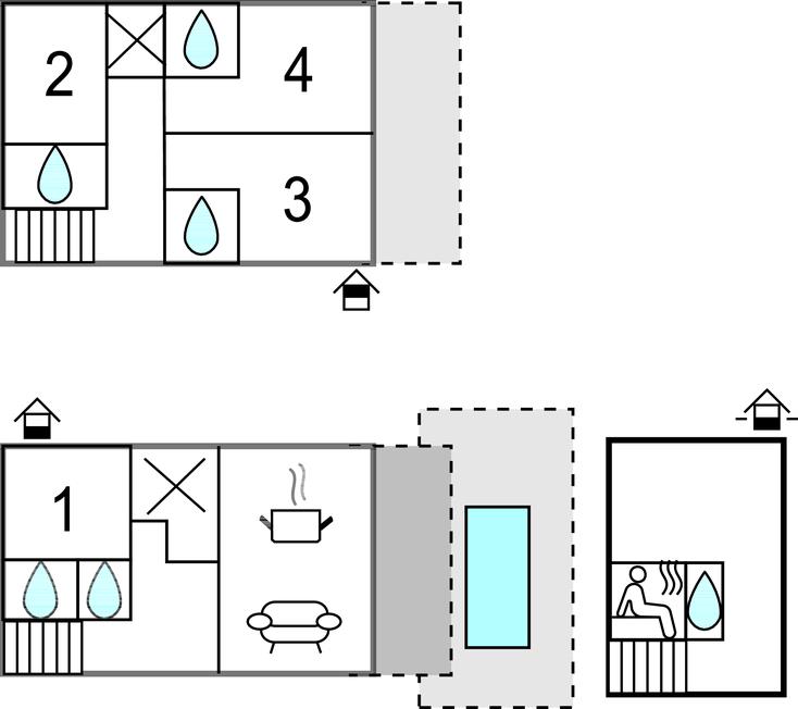 Badeværelse 4m2 (nr. 1) - WC. Varmt og koldt vand. Bruser