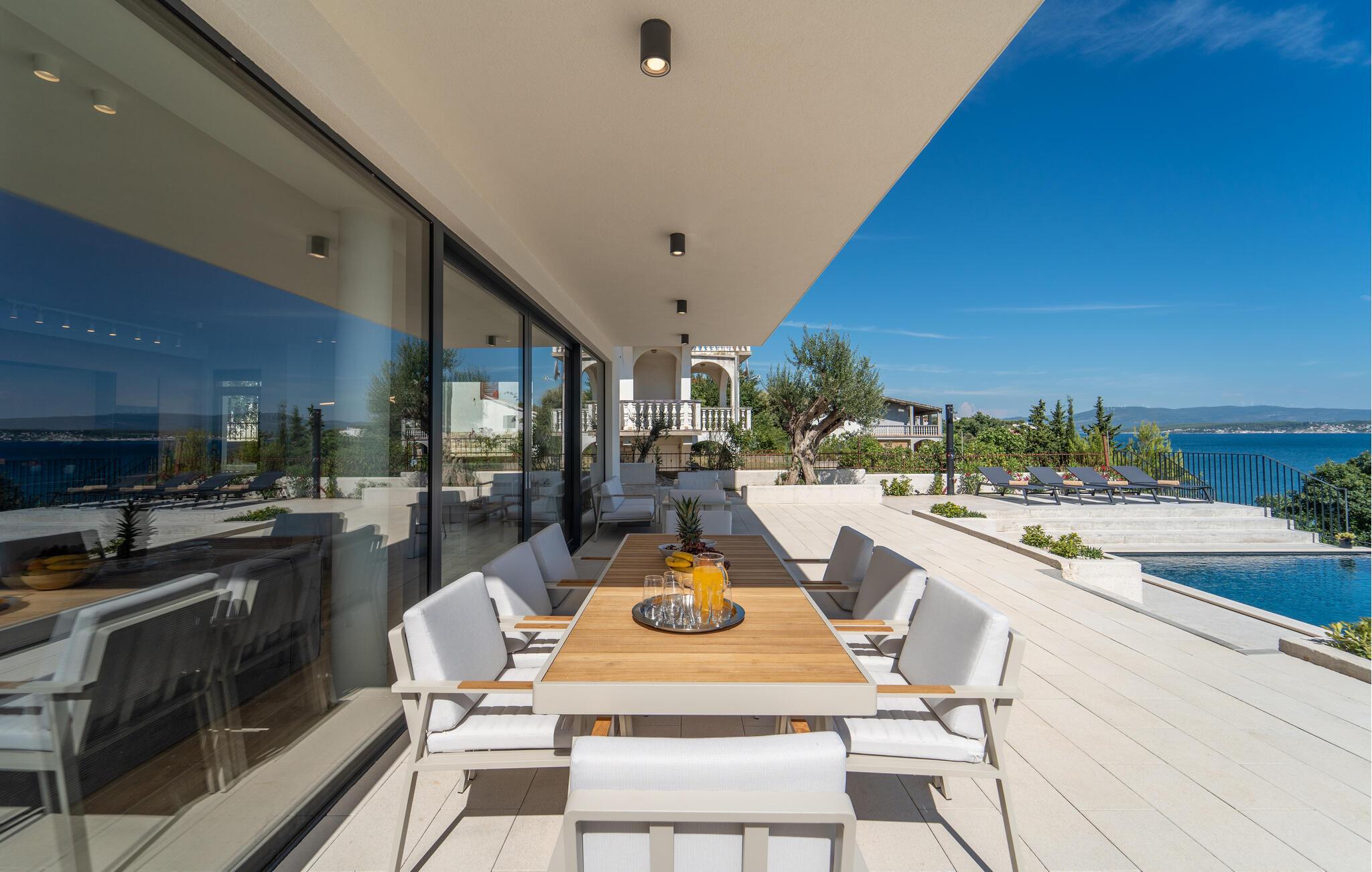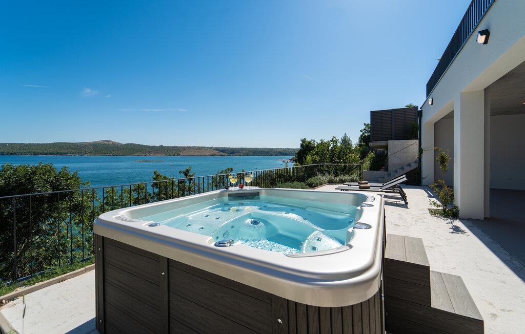 Huset byder jer velkommen med en vidunderlig udsigt over havet fra hver etage. Træd ind, og nyd den høje kvalitet og behagelige atmosfære. Det fantastiske køkken inviterer til kulinariske udfoldelser, og i stuen kan I læne jer tilbage i sofaerne og streame jeres yndlingsserier. I har også en sauna indendørs og et spabad på balkonen. I fitnessområdet står mange apparater til rådighed, så I kan holde træningen ved lige på ferien. Infinity-poolen ved terrassen indbyder til afslappende timer, mens I om aftenen kan tænde op i grillen og nyde den spektakulære havudsigt.