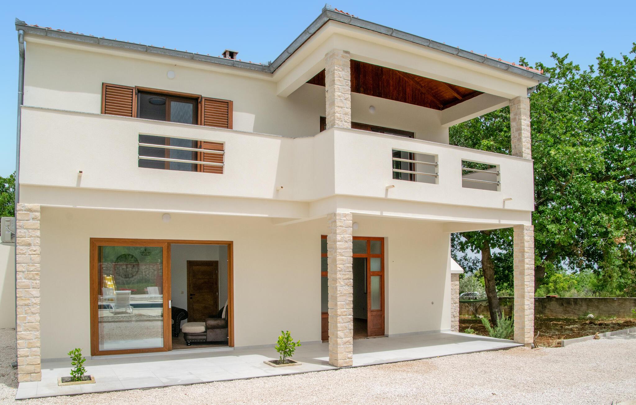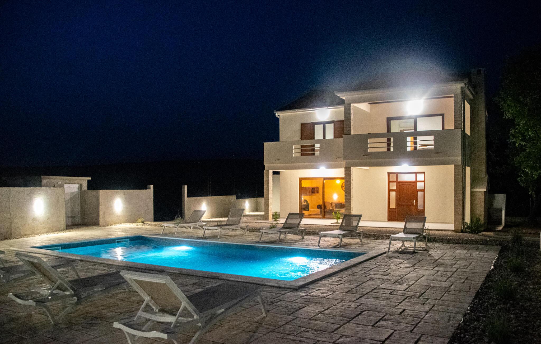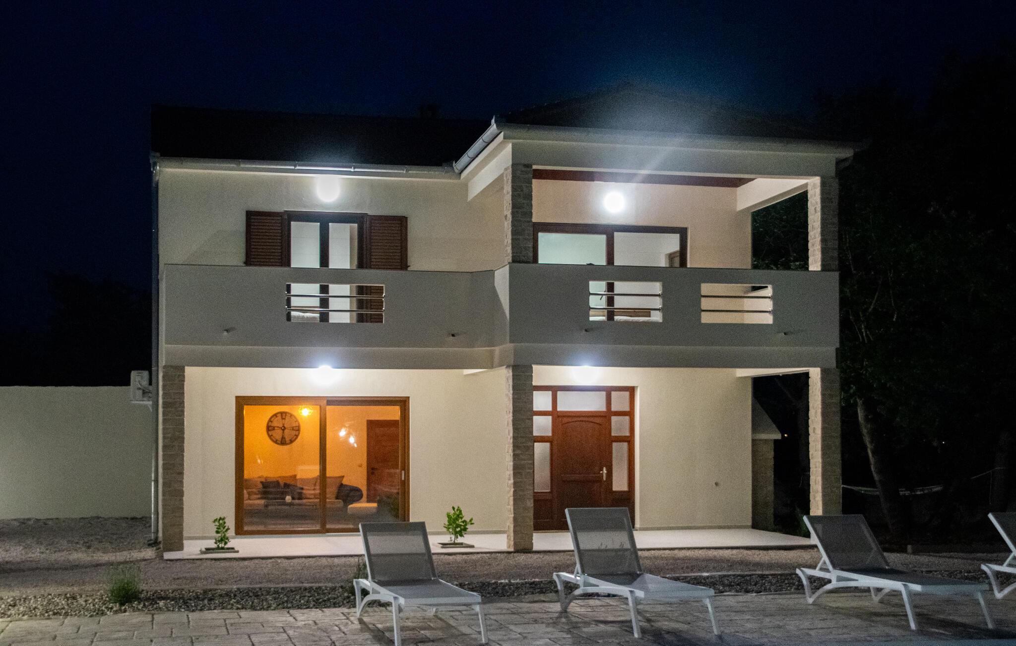 Glæd jer til en dejlig ferie i dette moderne feriehus i Posedarje. Nyd stille og fredelige dage på den rummelige terrasse udstyret med komfortable liggestole omkring den forfriskende pool. Slap af, mens børnene morer sig på legepladsen ved siden af ??poolen. Tag jeres morgenmad ved det smukke spisebord i spisekøkkenet og nyd jeres frie ferie. Afslut dagen komfortabelt på balkonen, hvorfra I kan se havets glitrende blå i horisonten. Eller tilbring en hyggelig grillaften med hele familien på den integrerede grillplads i huset.