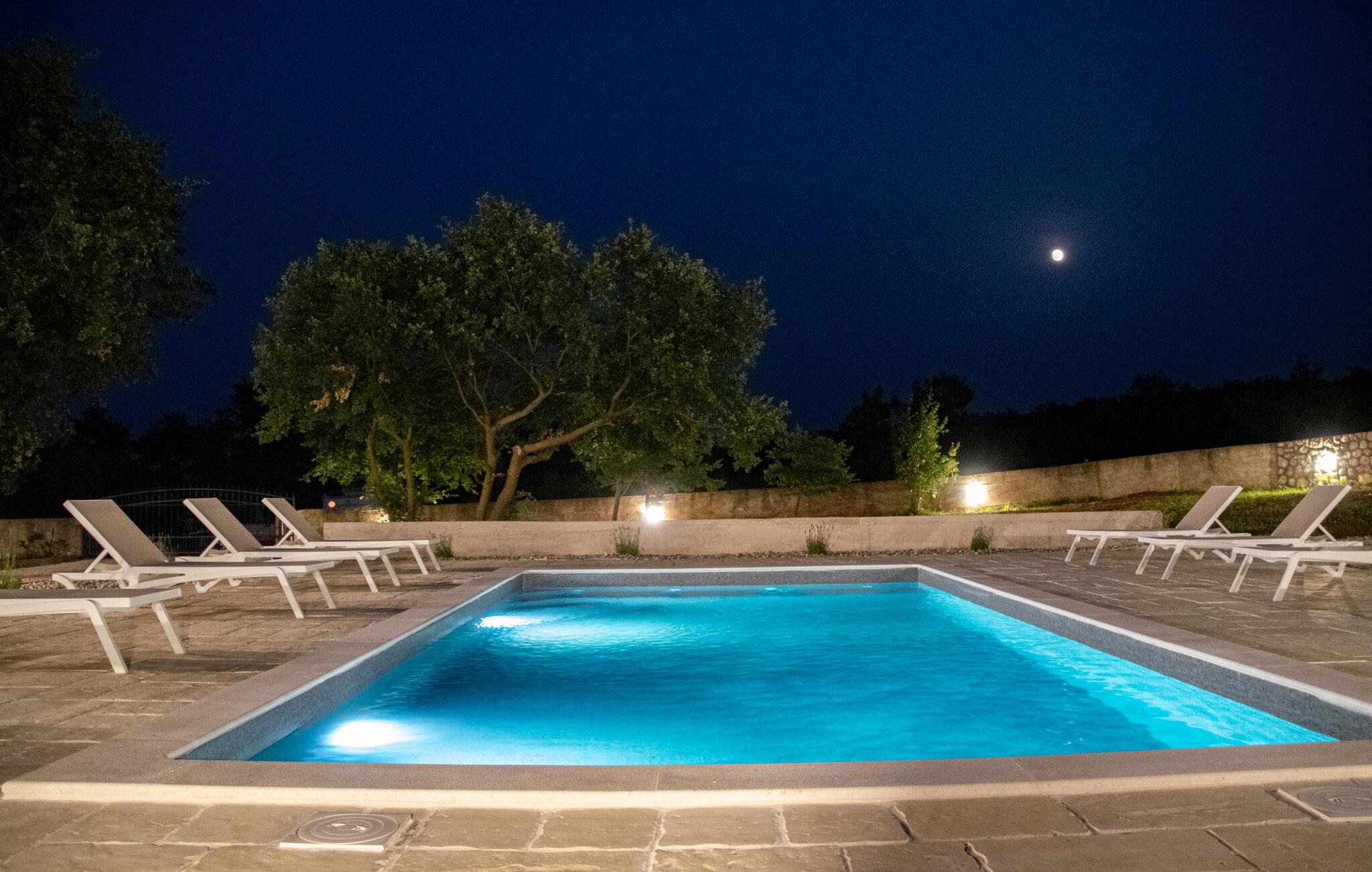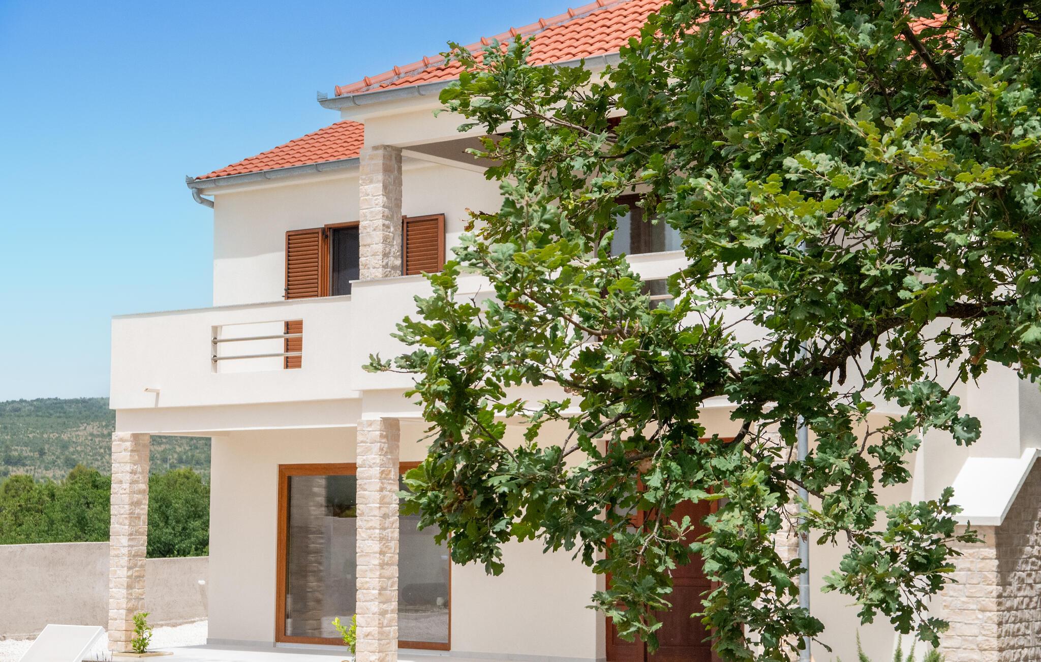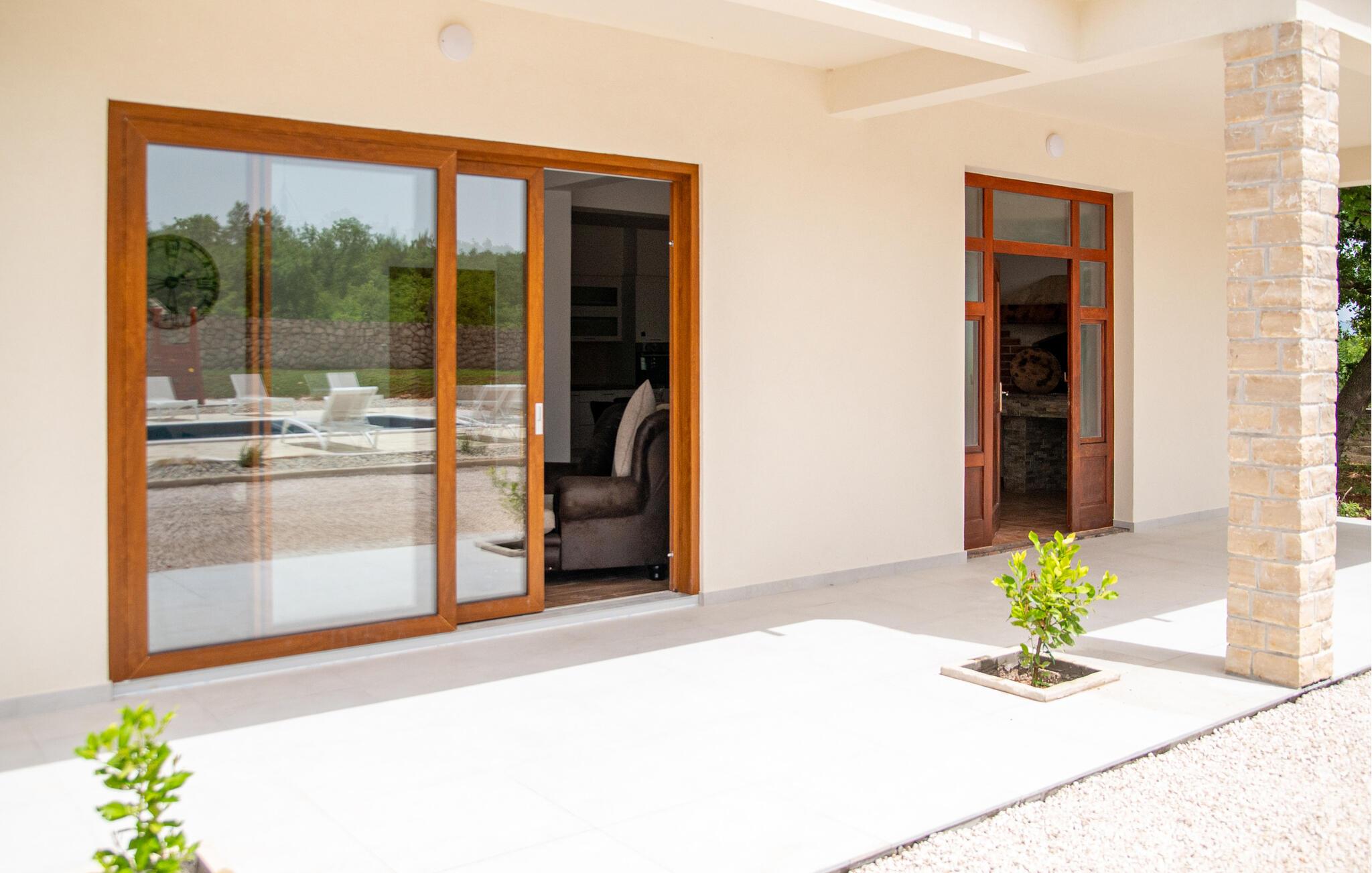 Glæd jer til en dejlig ferie i dette moderne feriehus i Posedarje. Nyd stille og fredelige dage på den rummelige terrasse udstyret med komfortable liggestole omkring den forfriskende pool. Slap af, mens børnene morer sig på legepladsen ved siden af ??poolen. Tag jeres morgenmad ved det smukke spisebord i spisekøkkenet og nyd jeres frie ferie. Afslut dagen komfortabelt på balkonen, hvorfra I kan se havets glitrende blå i horisonten. Eller tilbring en hyggelig grillaften med hele familien på den integrerede grillplads i huset.