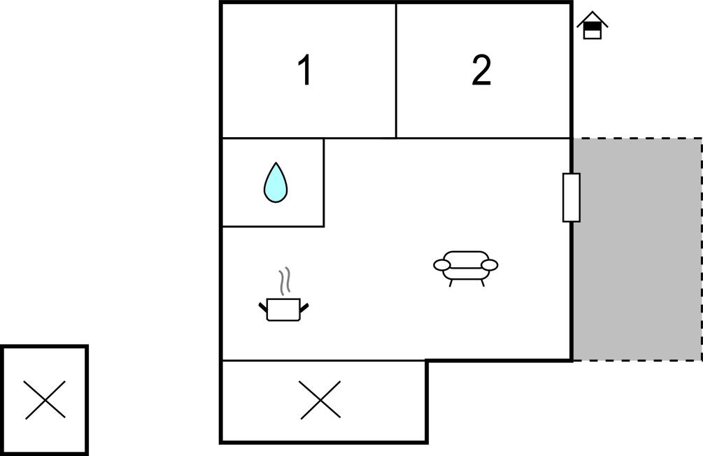Badeværelse 6m2 (nr. 1) - WC. Varmt og koldt vand. Bruser