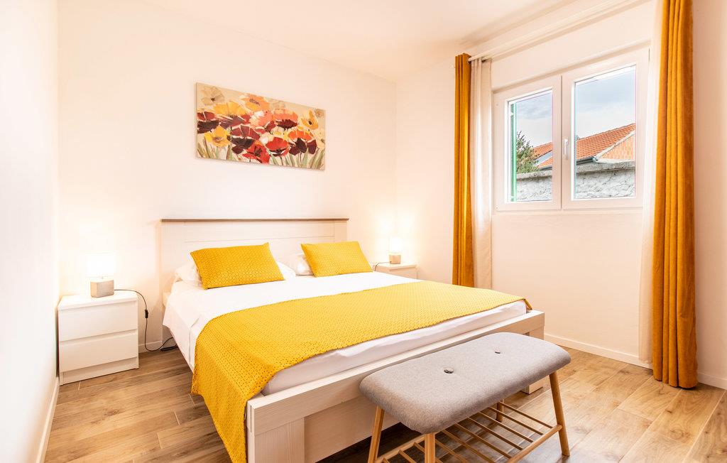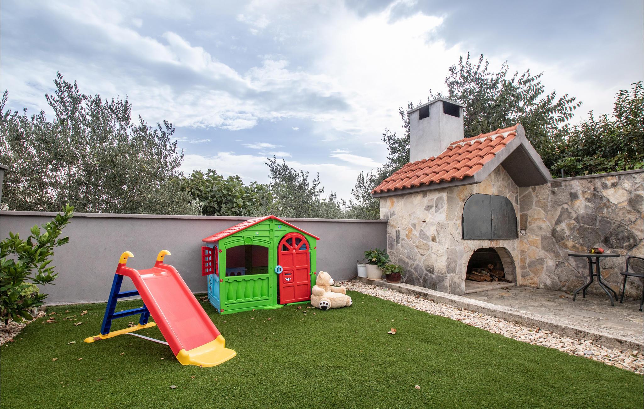 Rejs til Pridraga og tilbring en dejlig ferie med familien i dette indbydende hus. Huset vil blive stedet for ren afslapning og nærvær, uanset om I smækker benene op i sofaen efter en udflugt eller samles om spisebordet til spil og hygge. De smagfulde møbler og dekorative detaljer skaber en beroligende atmosfære. Udenfor giver den bevoksede pergola et rum, hvor det er dejligt at sidde, og hvor I kan nyde grillaftenerne.