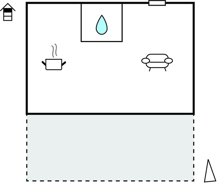 Opholdsstue/køkken 10m2 - 2 Sovepladser. (Dobbeltseng(e)).