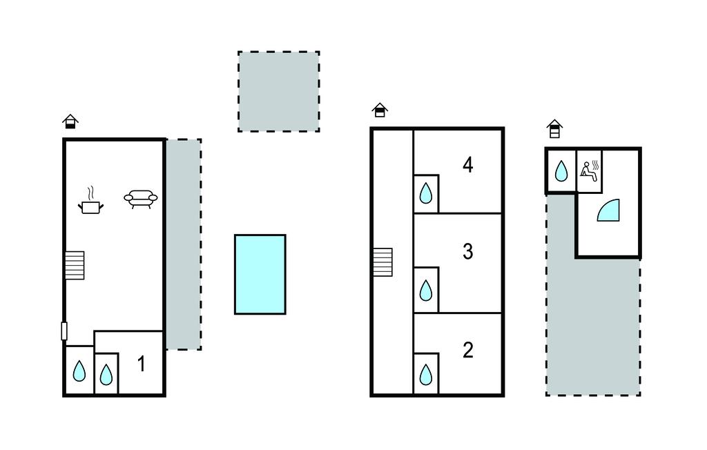 Badeværelse 5m2 (nr. 3) - WC. Varmt og koldt vand. Bruser
