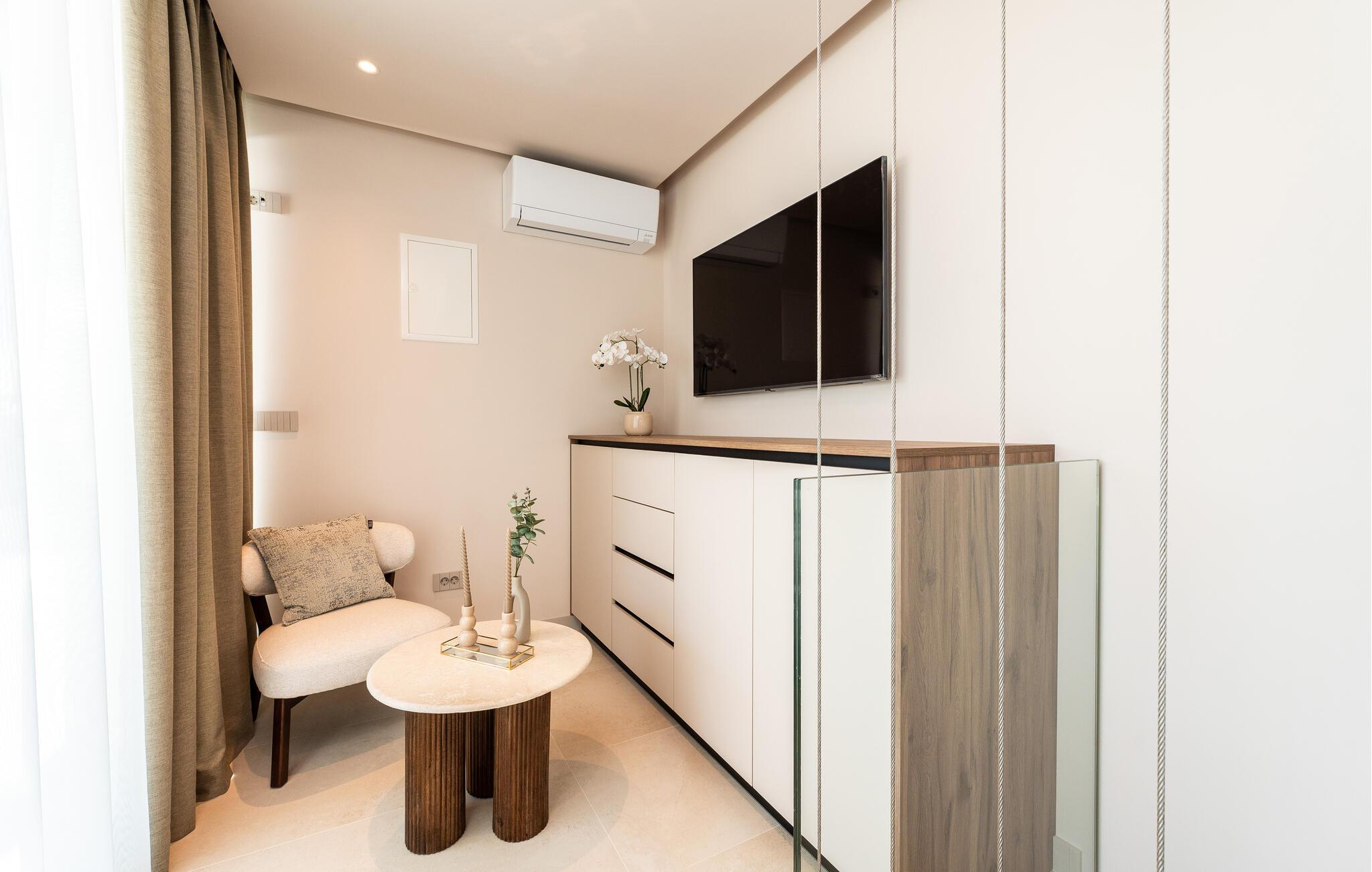 Begynd dagene med en afslappende dukkert i poolen og nyd en lækker morgenmad på den skyggefulde terrasse. Forkæl jer selv med afslapning i saunaen eller spabadet på øverste etage, mens I kigger ud over det nærliggende hav og lad batterierne op på de behagelige liggestole.