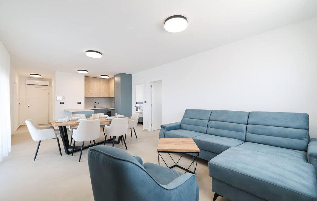 Nyd en afslappende ferie i jeres lyse, moderne lejlighed, der kombinerer komfort, ro og nærhed til stranden. Denne indkvartering tilbyder alt, hvad I behøver for et ubekymret ophold med hele familien. Træd indenfor og bliv budt velkommen af ??de rene, moderne møbler. Find jer til rette i den store sofa og nyd tiden sammen i den åbne stue. Tilbered jeres yndlingsmåltider i det fuldt udstyrede køkken med apparater af høj kvalitet og sæt jer ved det stilfulde spisebord.