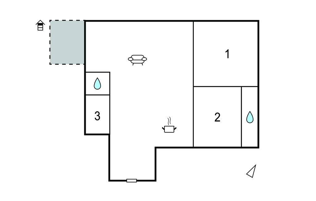 Badeværelse 5m2 (nr. 1) - WC. Varmt og koldt vand. Bruser