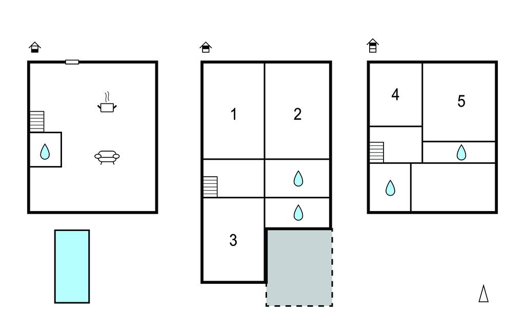 Badeværelse 5m2 (nr. 1) - WC. Varmt og koldt vand. Bruser