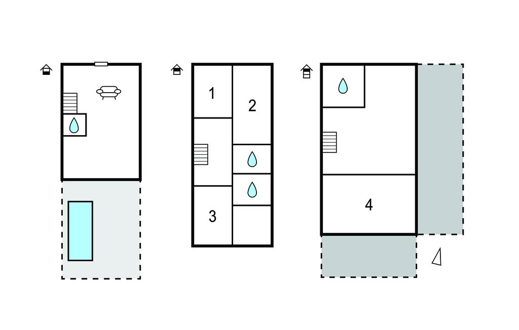 Badeværelse 5m2 (nr. 3) - WC. Varmt og koldt vand. Bruser