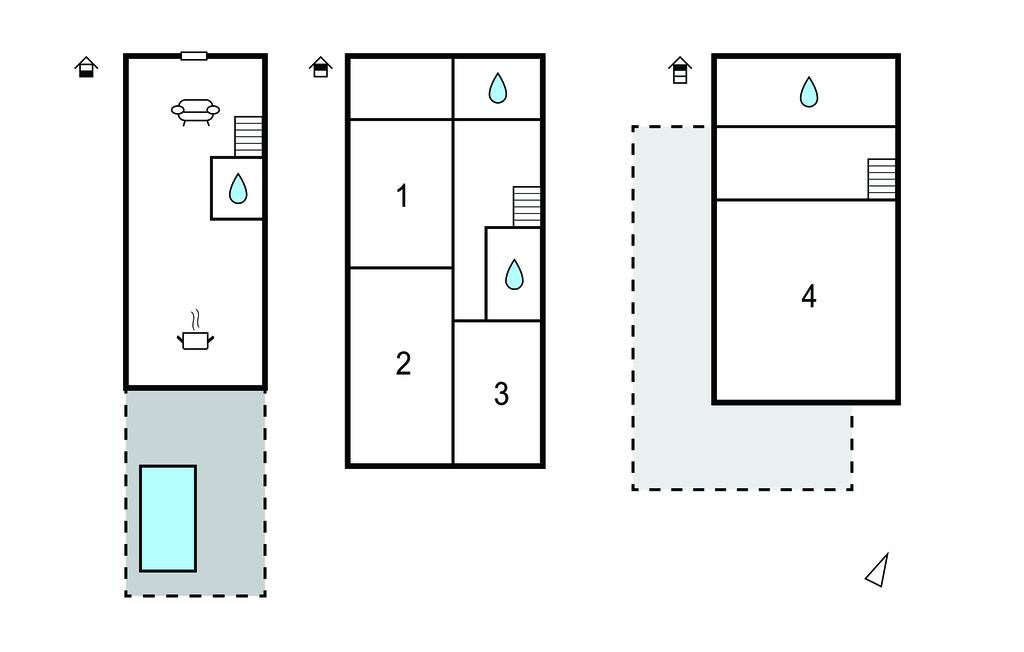 Badeværelse 5m2 (nr. 3) - WC. Varmt og koldt vand. Bruser