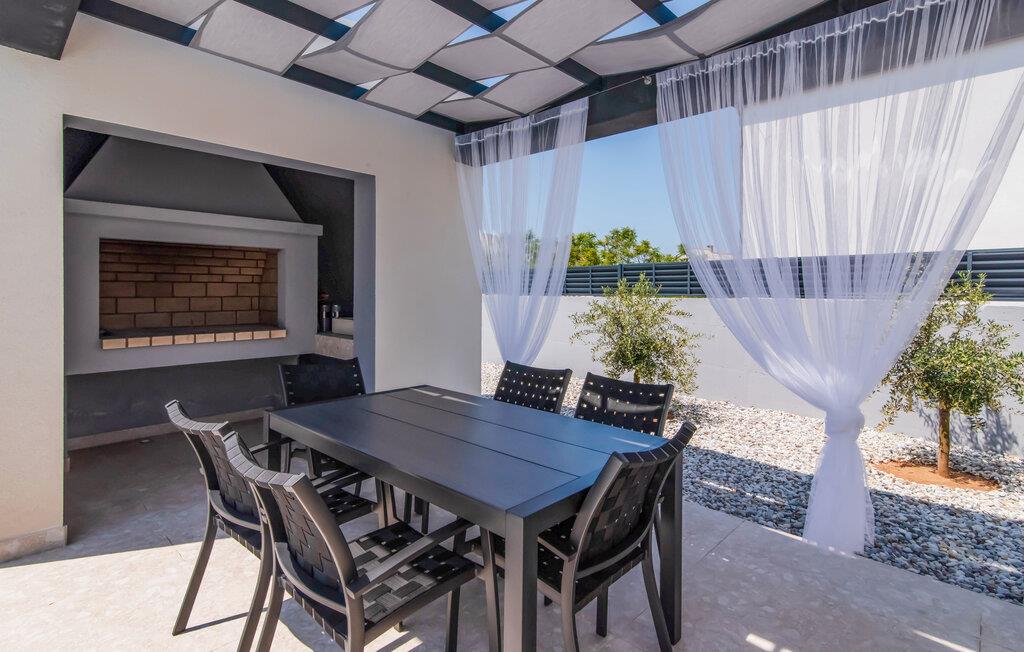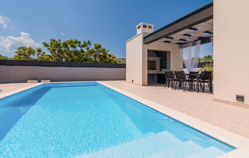 Nyd en luksuriøs ferie i dette moderne feriehus i Ražanac, der imponerer med sin moderne arkitektur og den fantastiske udsigt over Velebit-bjergene, som hver dag giver jer en magisk kulisse. Start dagen med en forfriskende dukkert i poolen og nyd roen og privatlivet, som dette eksklusive sted tilbyder.
