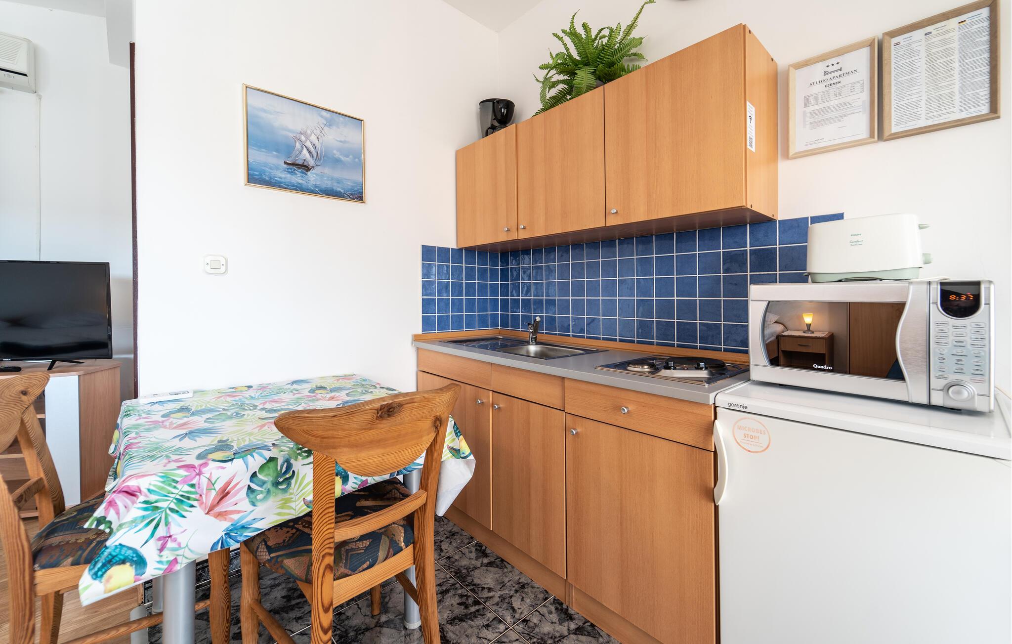 Velkommen til Ribnica, hvor der venter jer en herlig ferie med mange gode udflugter i denne funktionelle lejlighed. Indretningen fremtræder lyst og attraktivt i ét rum med komfortable møbler og et godt udstyret køkken, hvor I kan tilberede jeres livretter efter en dag på farten. Lad aftenen gå på hæld i den behagelige sofa med lidt lækre snacks og en god film på tv'et, mens I lægger planer for de kommende dage.