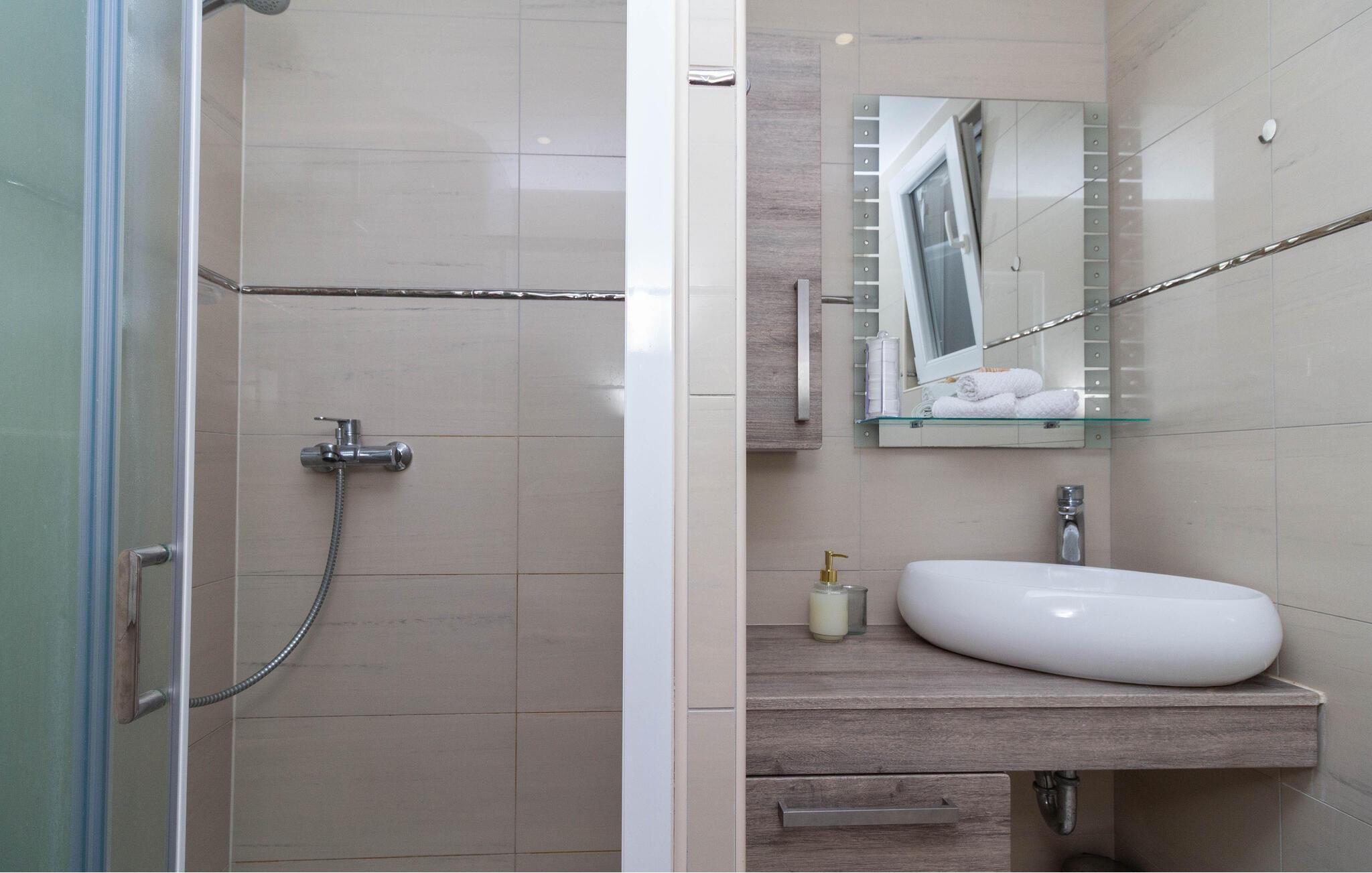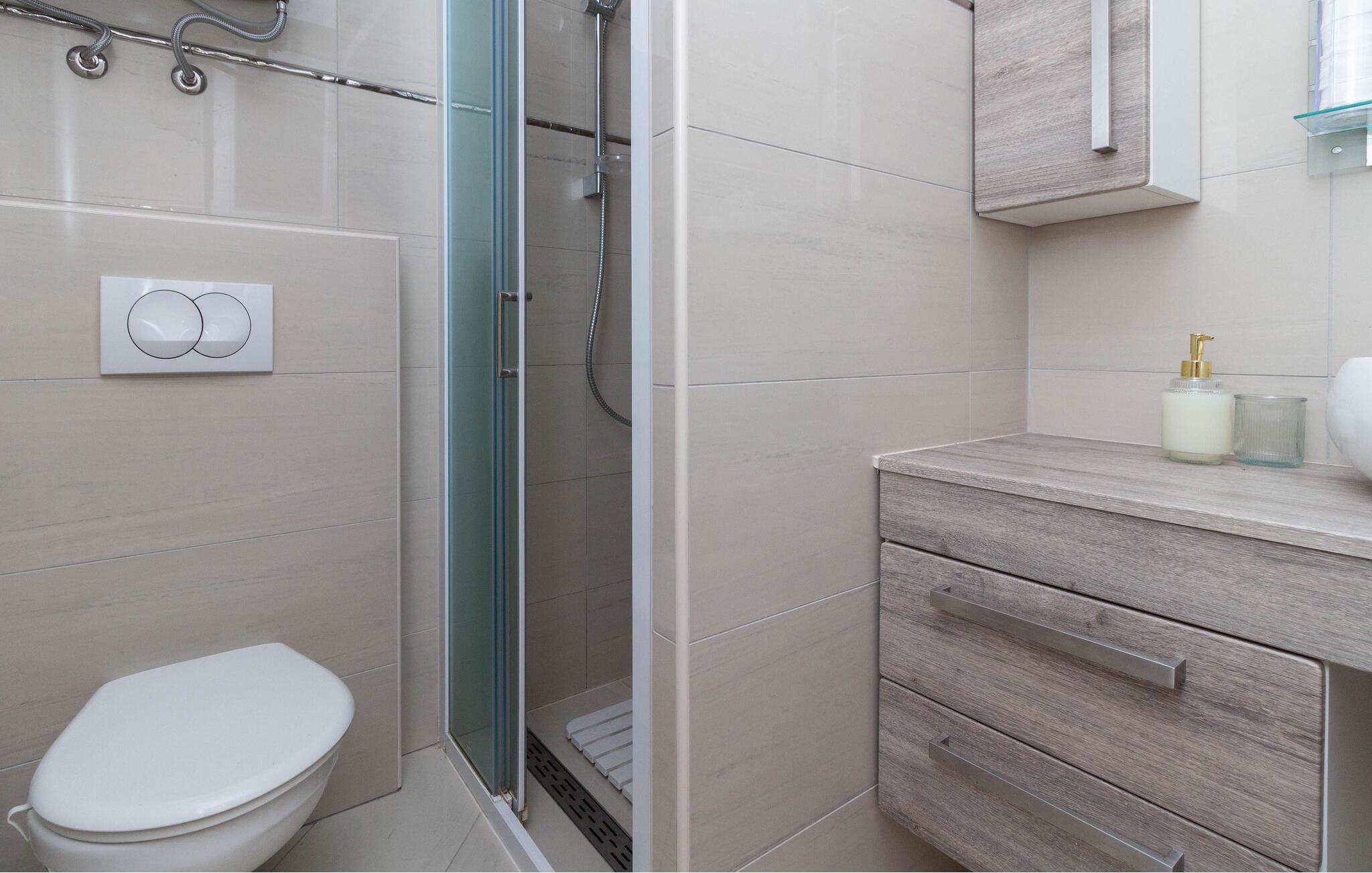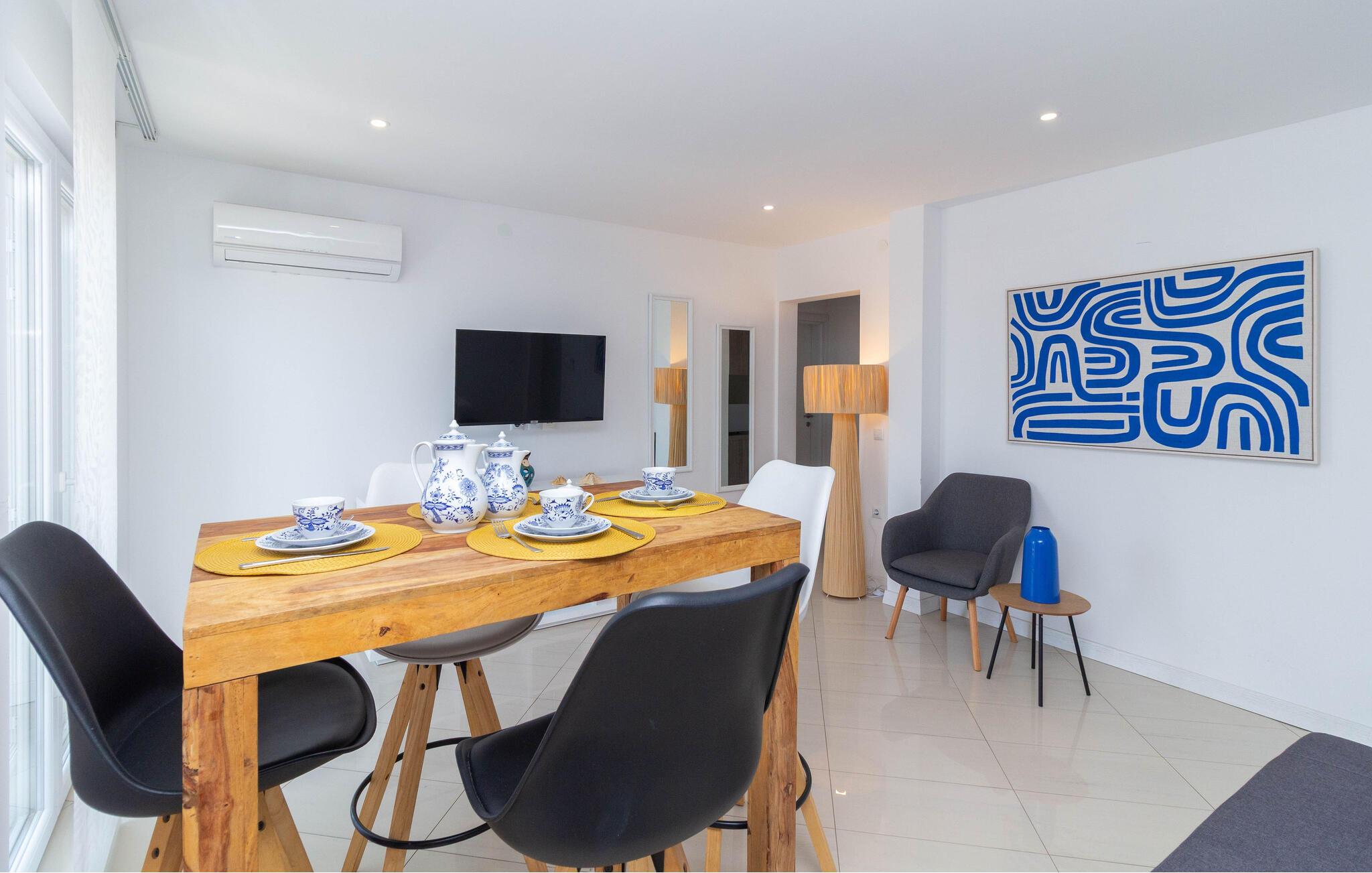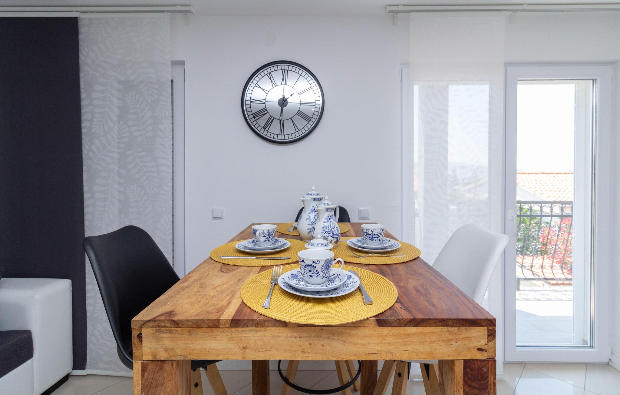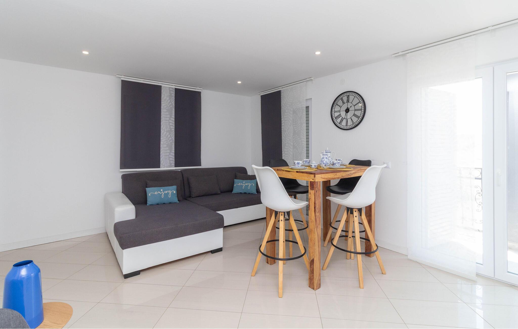 Bliv forbløffet over den behagelige og stilfulde atmosfære i denne ferielejlighed, kun nogle få skridt fra stranden og som er oplagt til afslappende dage med familien. Fremstil kroatiske retter i det åbne køkken, sæt jer ved spisebordet – det optimale sted for hyggelige måltider og hyggelige spilleaftener – og stream en god serier på den behagelige sofa efter en lang dag.