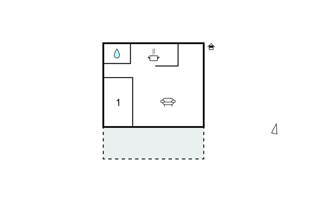 Opholdsstue/køkken 35m2 - 2 Sovepladser. (Sofa, madras eller lignende).