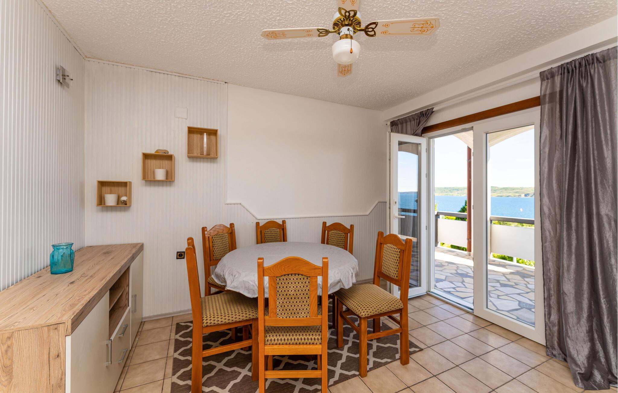 Velkommen til denne attraktive lejlighed, der ligger i en bygning med flere ferieboliger lige uden for Rtina. Lejligheden er nydeligt indrettet med gode møbler og alle de faciliteter, I som par eller lille familie behøver for at kunne slappe af og lade skuldrene sænke efter en herlig dag på farten. Tilbered en lækker aftensmad i det funktionelle køkken og nyd dem ved spisebordet eller på altanen, mens I lægger planer for dagen, der kommer, med en skøn udsigt over havet.