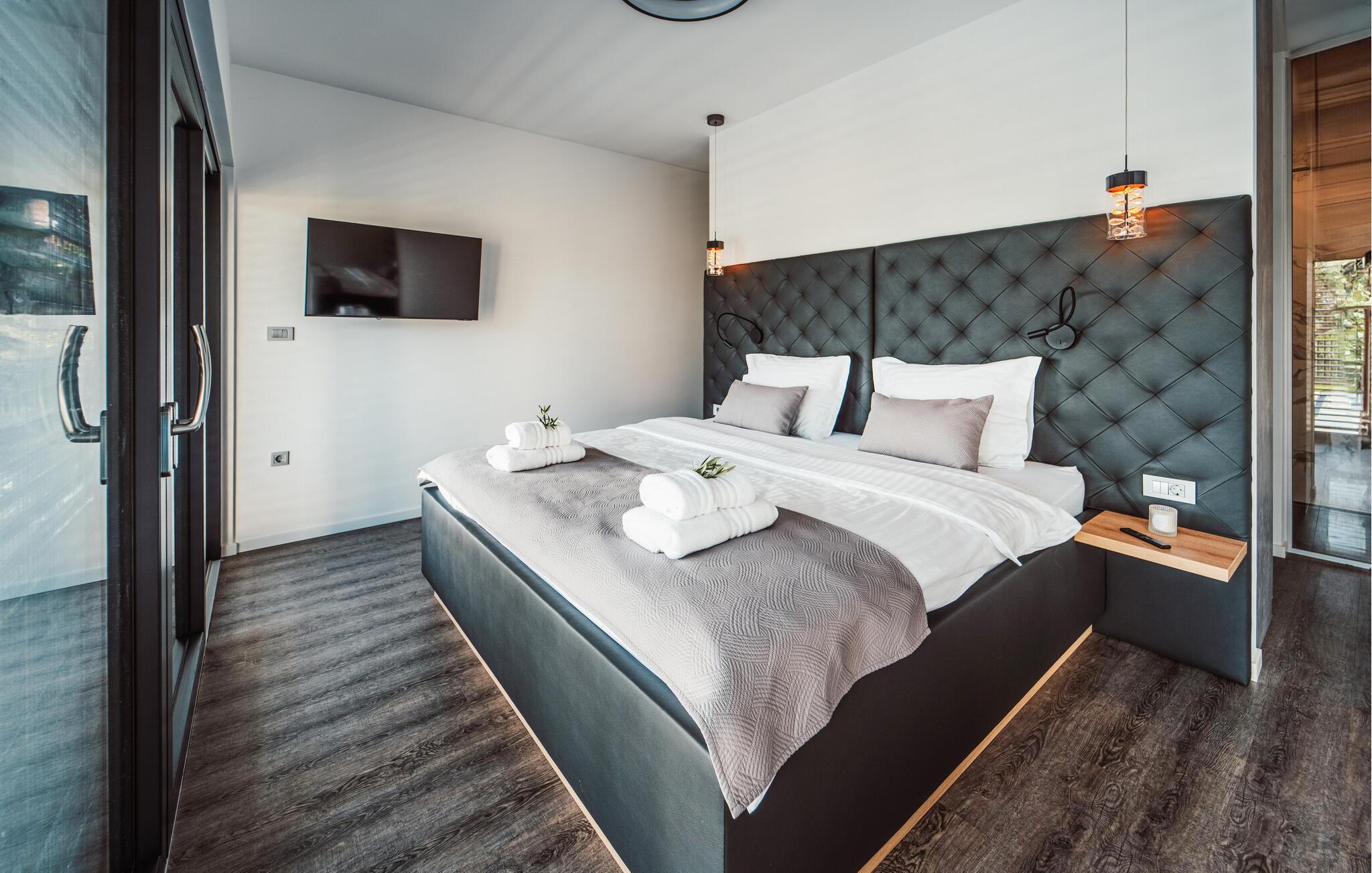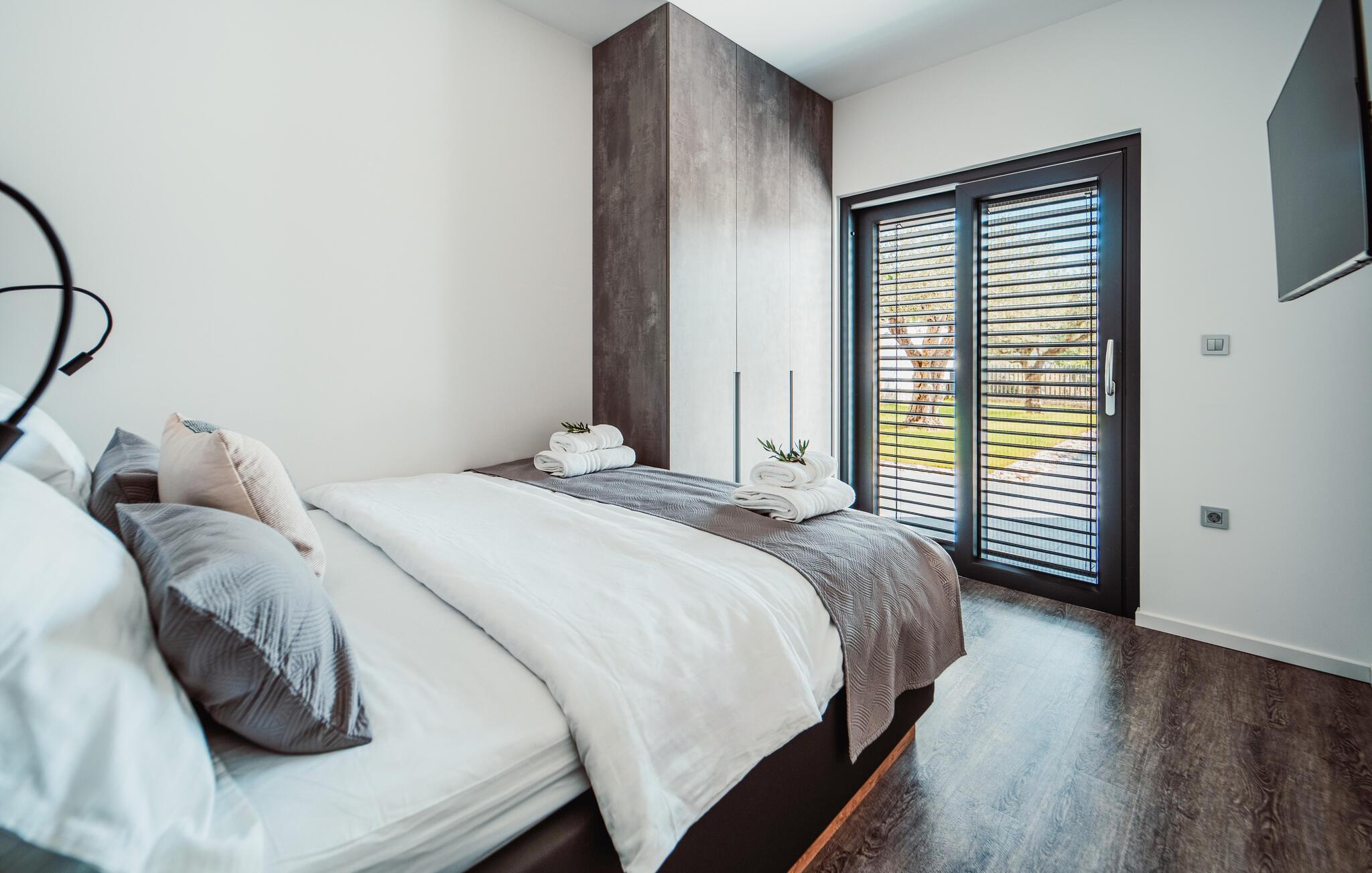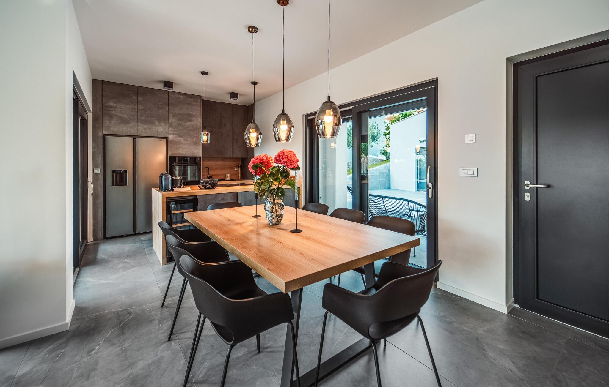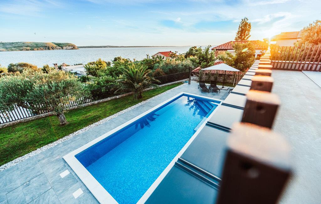 Tilbring jeres næste ferie i Kroatien i dette moderne feriehus i Rtina, en idyllisk kystby mellem Zadar og øen Pag. Feriehusets stilfulde indretning lægger op til at føle sig godt tilpas. Den åbne stue og spisestue med store panoramavinduer byder på en vidunderlig udsigt. Tilbered lækre måltider i det moderne, udstyrede køkken og tilbring afslappende aftener i den rummelige opholdsstue.