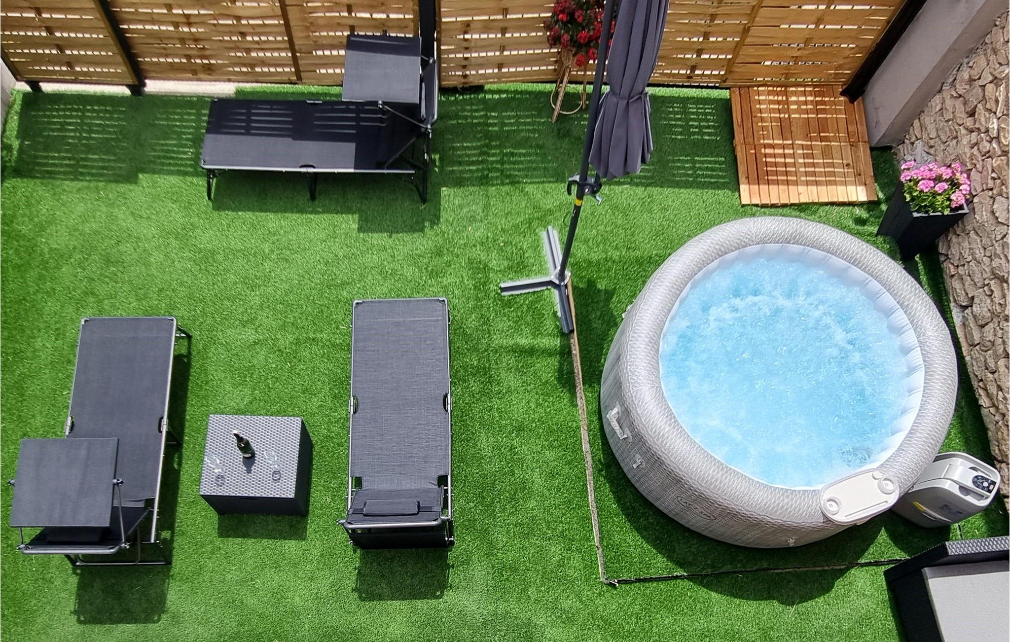 Dette fantastiske feriehus i Skabrnja nær Zadar byder på hyggelige timer, sjove aktiviteter, åben ild og endda en sauna. Spabadet bobler, forhåbentlig også champagnen, kødet syder på den åbne grill, og I døser i solen. I kan også træne i fitnesscentret, hvis I ønsker at holde jer i form på ferien. Sid sammen på den overdækkede terrasse og lave planer for de kommende dage. For der er meget at udforske her.