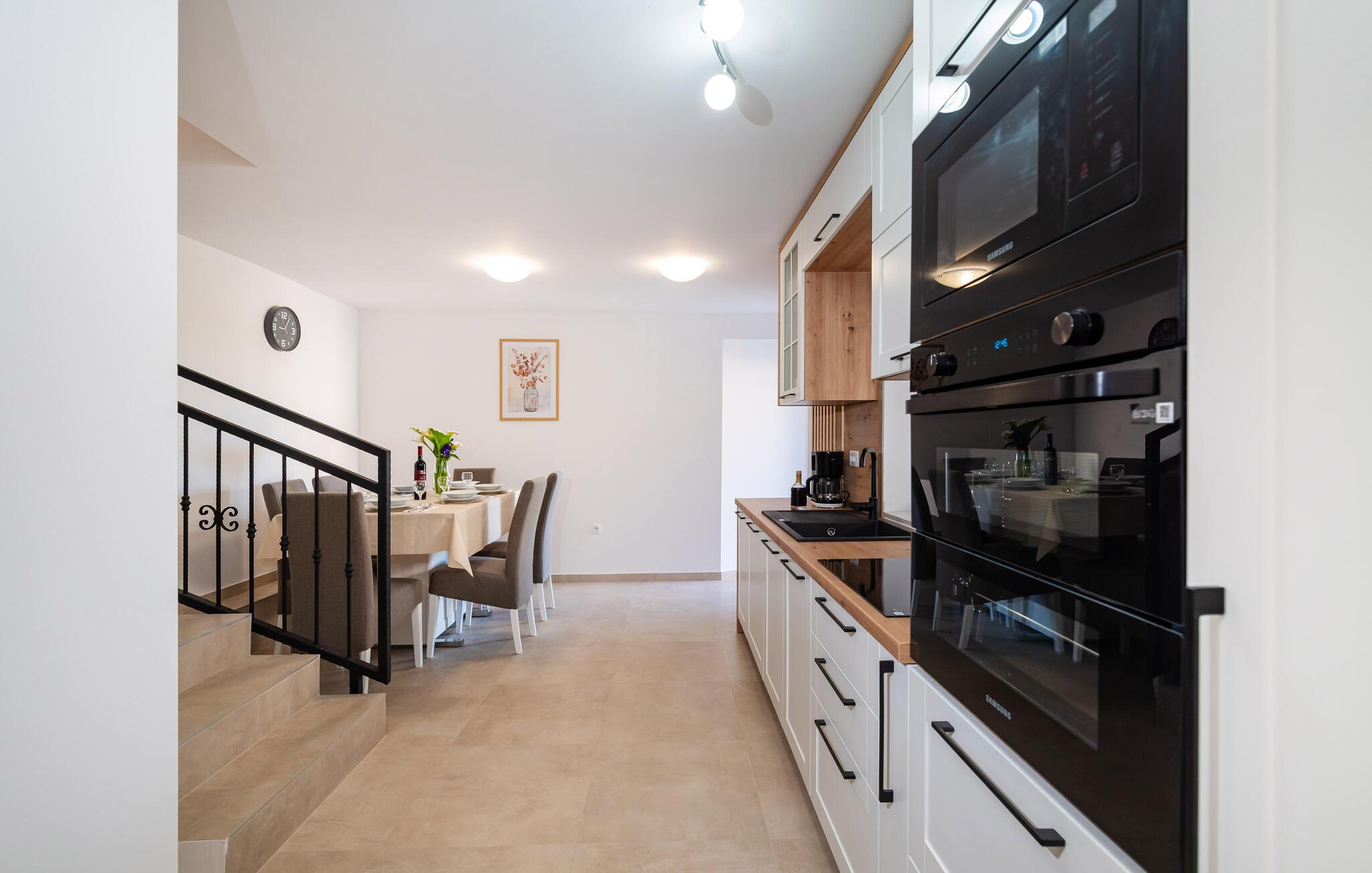 Velkommen til dette attraktive hus, der ligger i dejlige omgivelser tæt på Zadar og kysten, og hvor der venter jer en herlig base for mange fine udflugter. Huset er nydeligt indrettet over flere etager med gode møbler og alle de faciliteter, I behøver for at slappe af og lade skuldrene falde under jeres ophold. Efter dagens udflugter kan I tilberede en lækker aftensmad i det veludstyrede køkken, nyde måltidet ved spisebordet med et godt glas vin og lægge planer for de kommende dage.