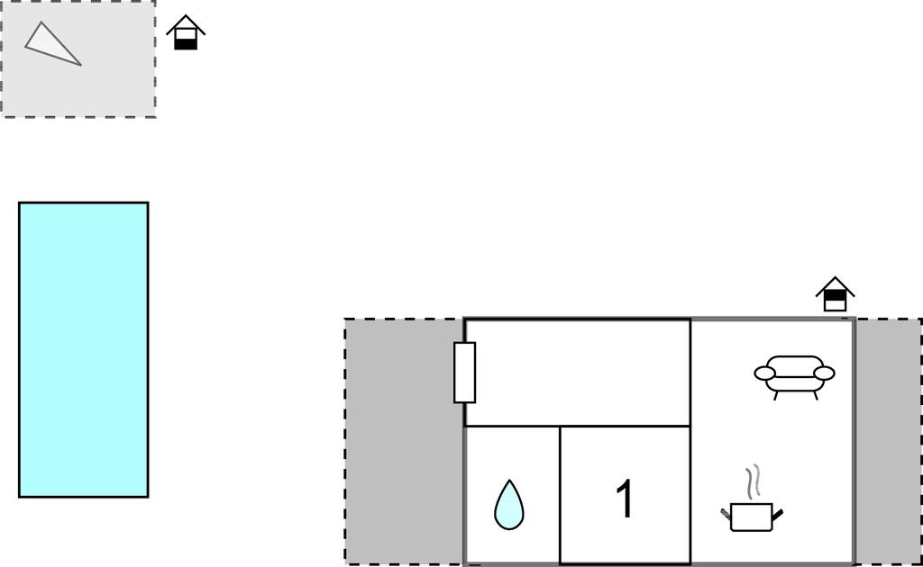 Opholdsstue/køkken 20m2 - 2 Sovepladser. (Sofa, madras eller lignende).