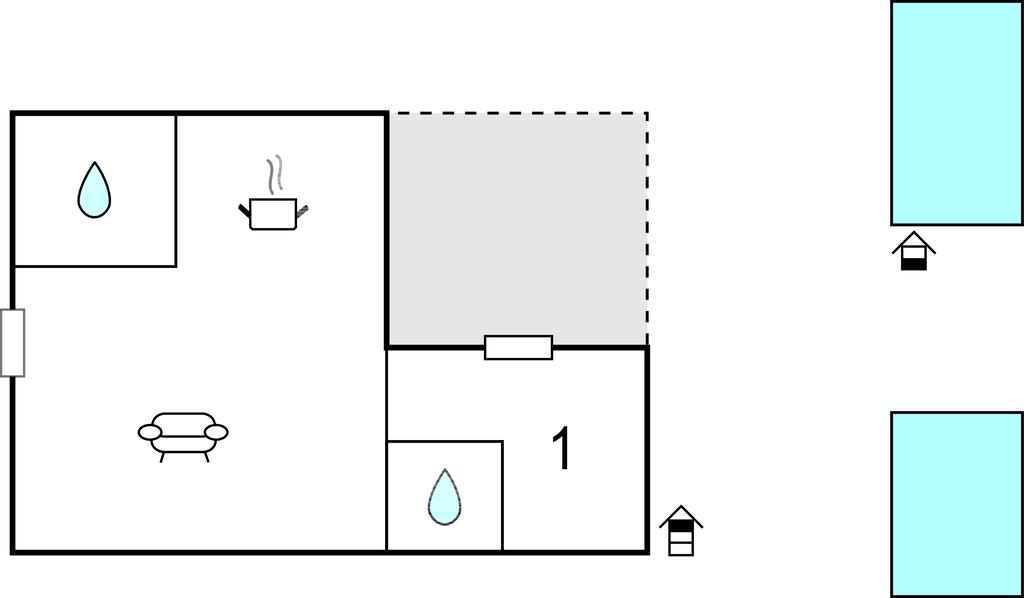 Opholdsstue/køkken - 2 Sovepladser. (Sofa, madras eller lignende).