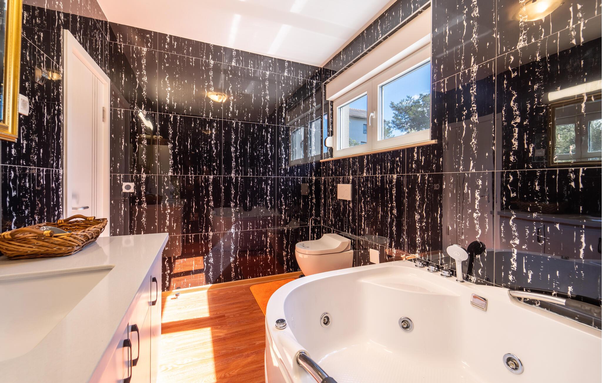 Tag familien under armen og rejst til Sukosan, hvor der venter jer en fuldt ud afslappende ferie i denne attraktive lejlighed. Her får I godt med plads til et ophold med den udvidede familie, uden I behøver give køb på den gode komfort. Lejligheden er flot indrettet og byder på alle de faciliteter, I har brug for, til at gøre gøremålene og madlavningen til en leg. Efter aftensmaden kan I gøre det lidt ekstra godt for jer selv og sætte jer til rette med et godt glas vin i boblebadet. I den helt anden ende af skalaen er der mulighed for at holde formen ved lige i fitness-rummet, der deles med de andre gæster.