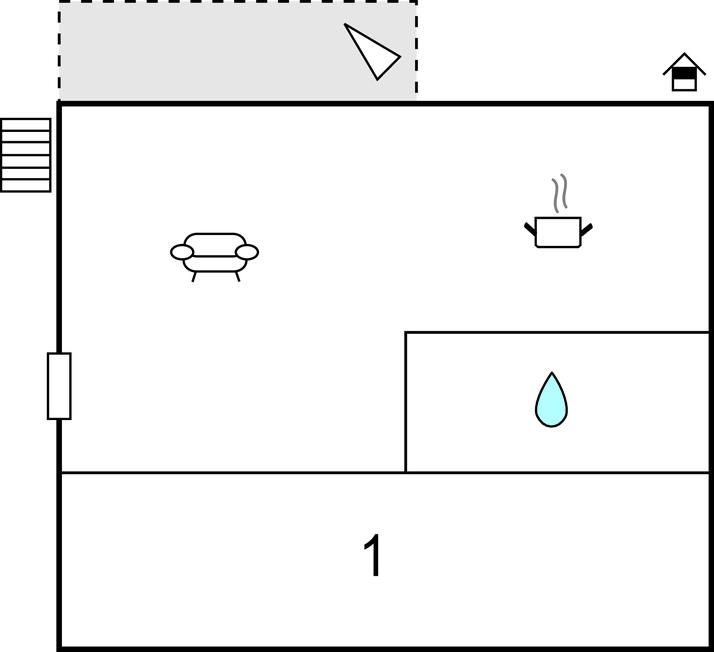 Opholdsstue/køkken 22m2 - 2 Sovepladser. (Sofa, madras eller lignende).
