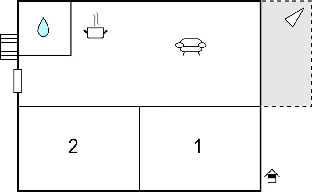 Opholdsstue/køkken 25m2 - 2 Sovepladser. (Sofa, madras eller lignende).
