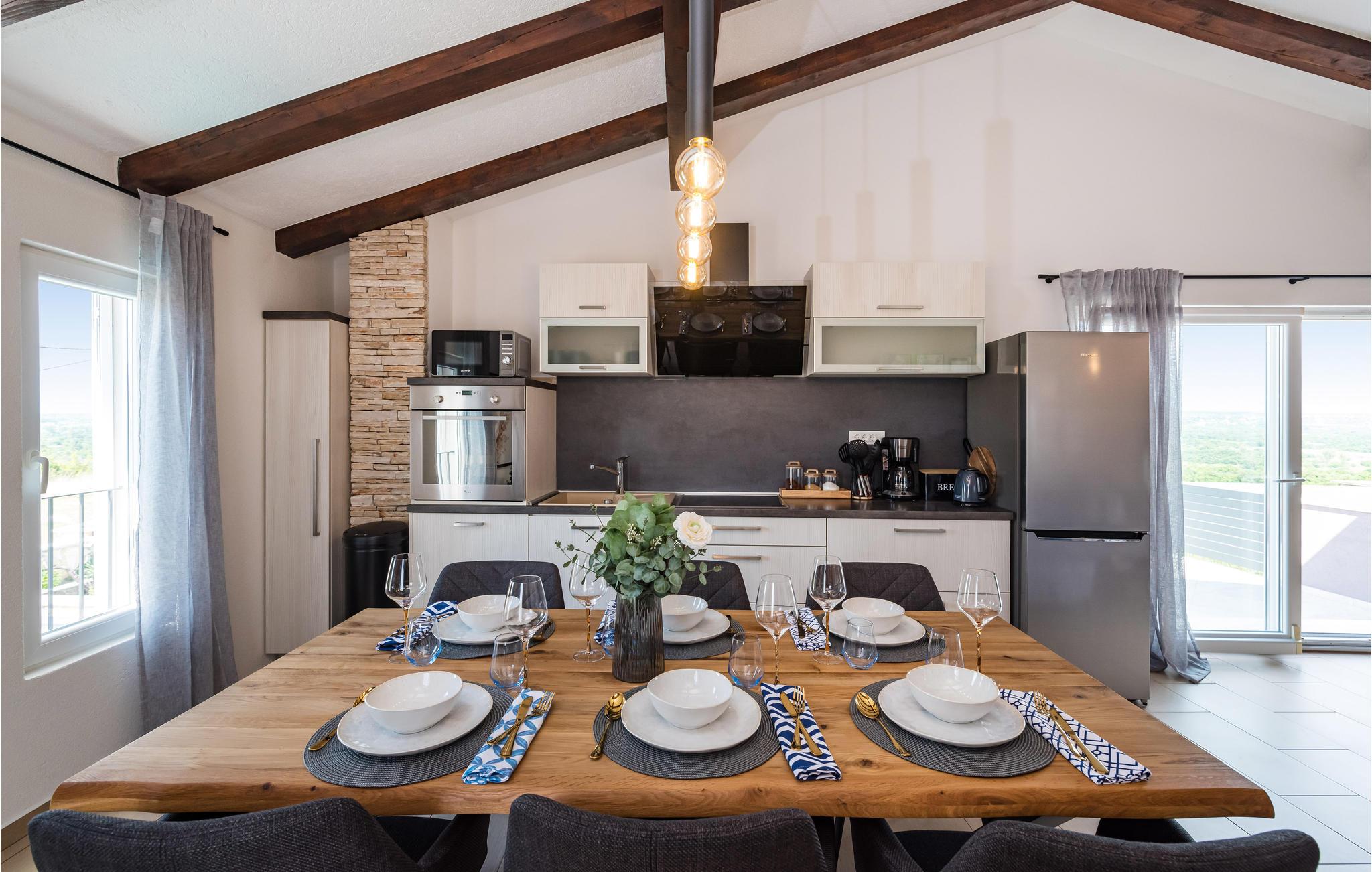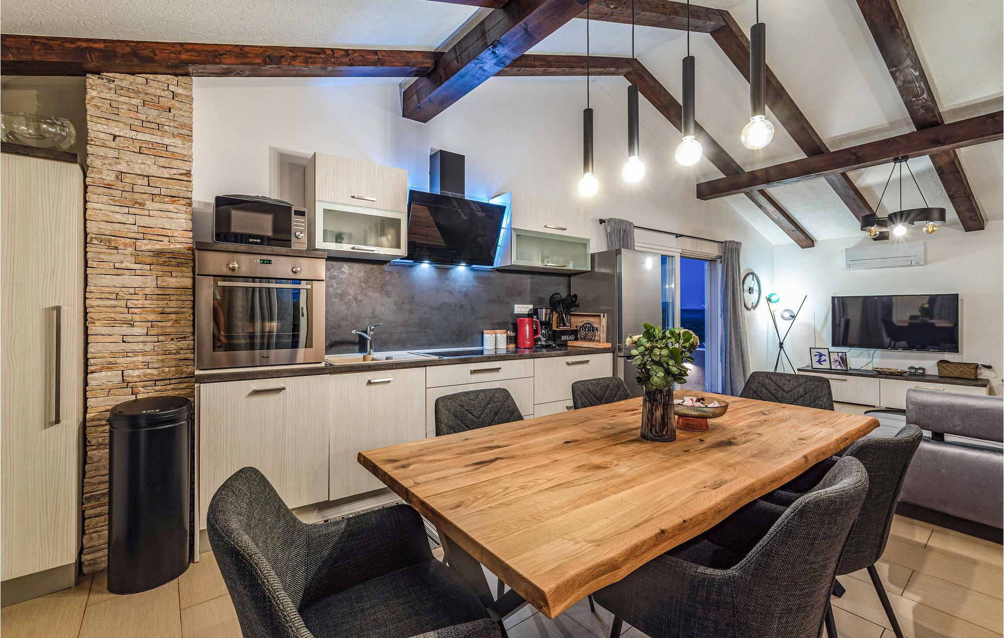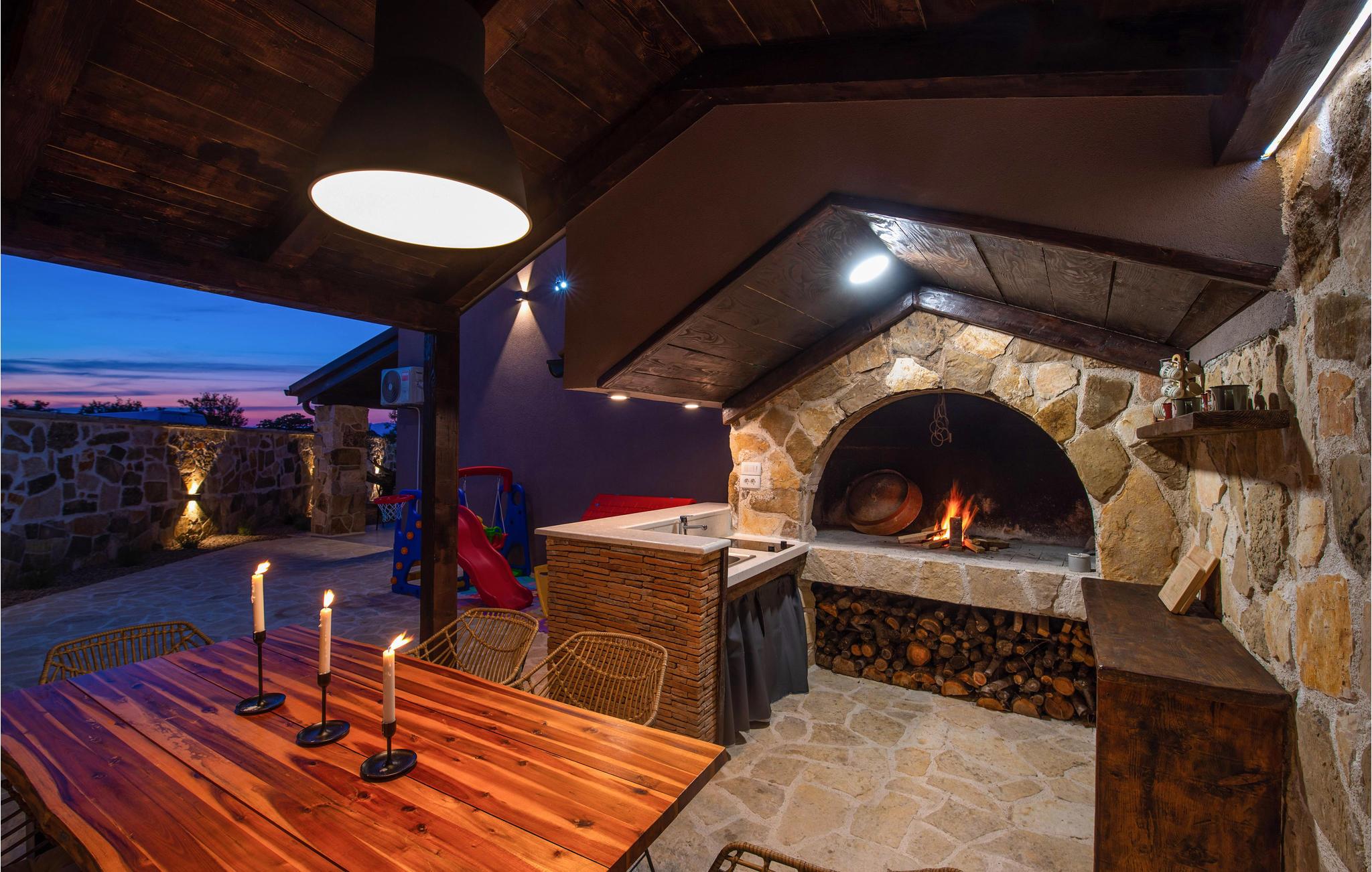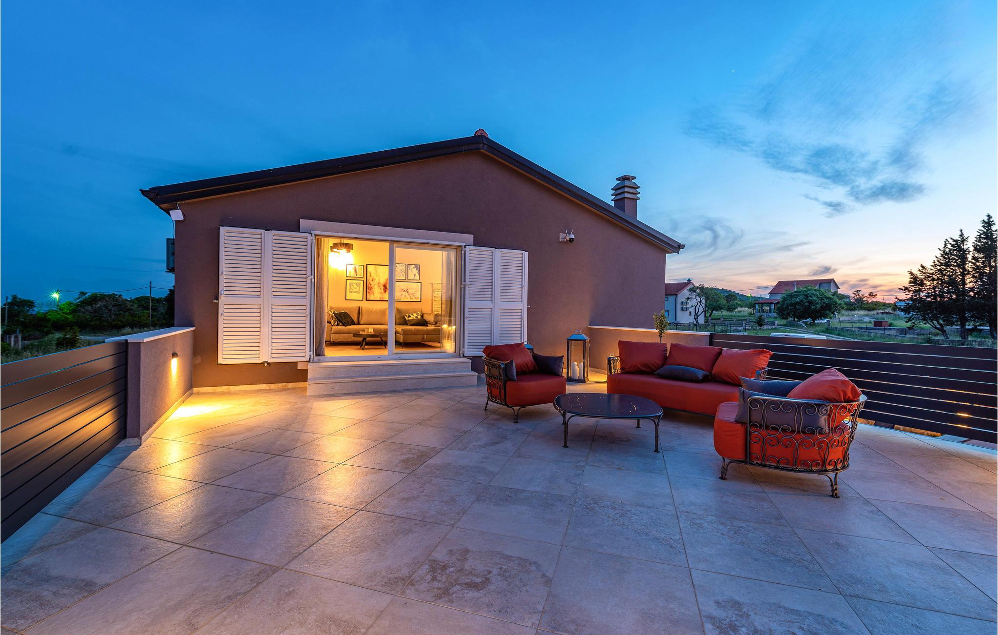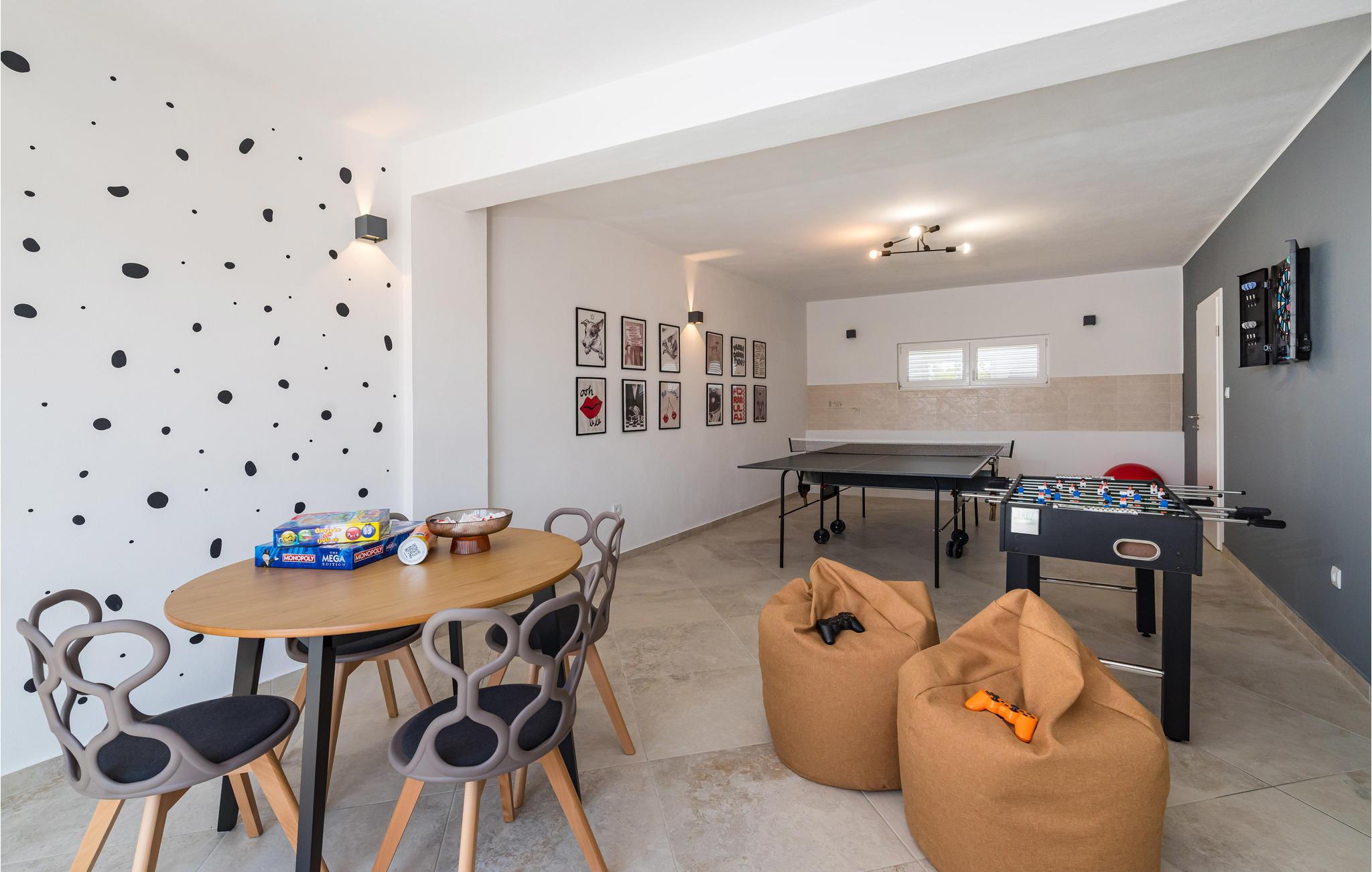 Slap af i dette rummelige og moderne feriehus med swimmingpool. Tilbring en uforglemmelig ferie med hele familien i dette smukke hus, der vil friste jer med sine mange faciliteter og underholdningsmuligheder. Glæd jer til husets indre, som venter jer med tiltalende komfort, hyggelige lokaler og et aktivitetsrum med leg og hygge. Spil dart, bordtennis og bordfodbold, før I begiver jer ud i det fri. Den store terrasse er det ideelle sted at nyde solen med en kølig drink. Se ud på det rolige landskab eller spring i den forfriskende pool for en svømmetur. Om aftenen kan I samles til en grill, mens de små udforsker legehuset og legetårnet ved siden af. Oplev kystens bagland, mens I vandrer og cykler, og planlæg ture til Kariner og Novigrader Meer samt til Adriaterhavets smukke stenstrande. Nyd at dykke ned i det krystalklare hav og lad jer blive båret på vandoverfladen. Prøv forskellige vandaktiviteter eller besøg byen Zadar, som byder på en række seværdigheder. Glæd jer til en uforglemmelig ferie i Dalmatien!