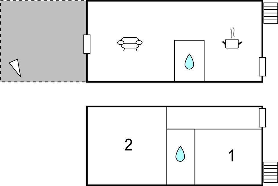 Opholdsstue 12m2 - 1 Soveplads. (Sofa, madras eller lignende).