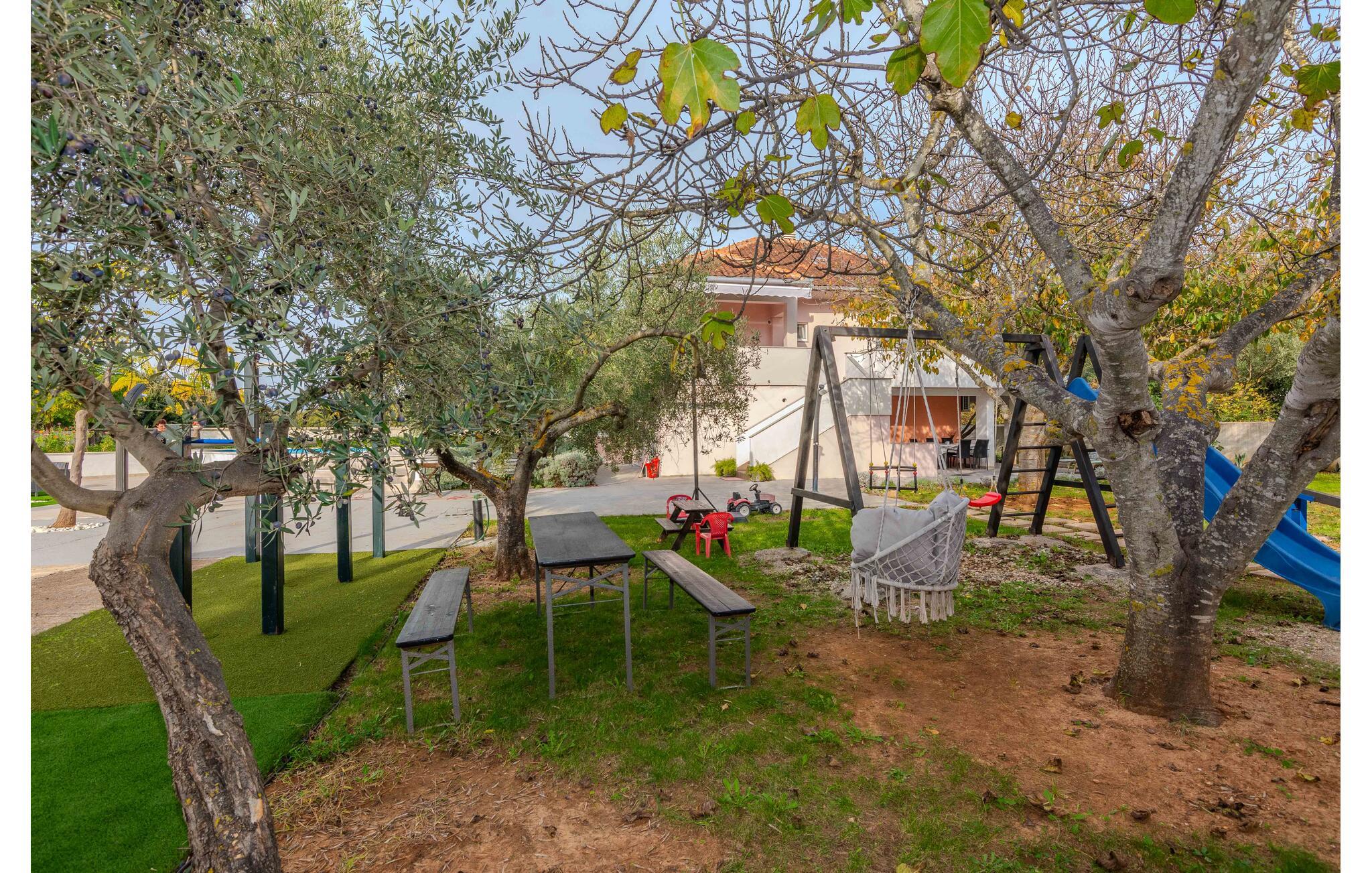 Nyd solen på jeres private balkon, mens I lytter til børnene lege. I haven finder I en fælles pool med solterrasse, hvor I kan slappe af, mens børnene morer sig på den skyggefulde legeplads.