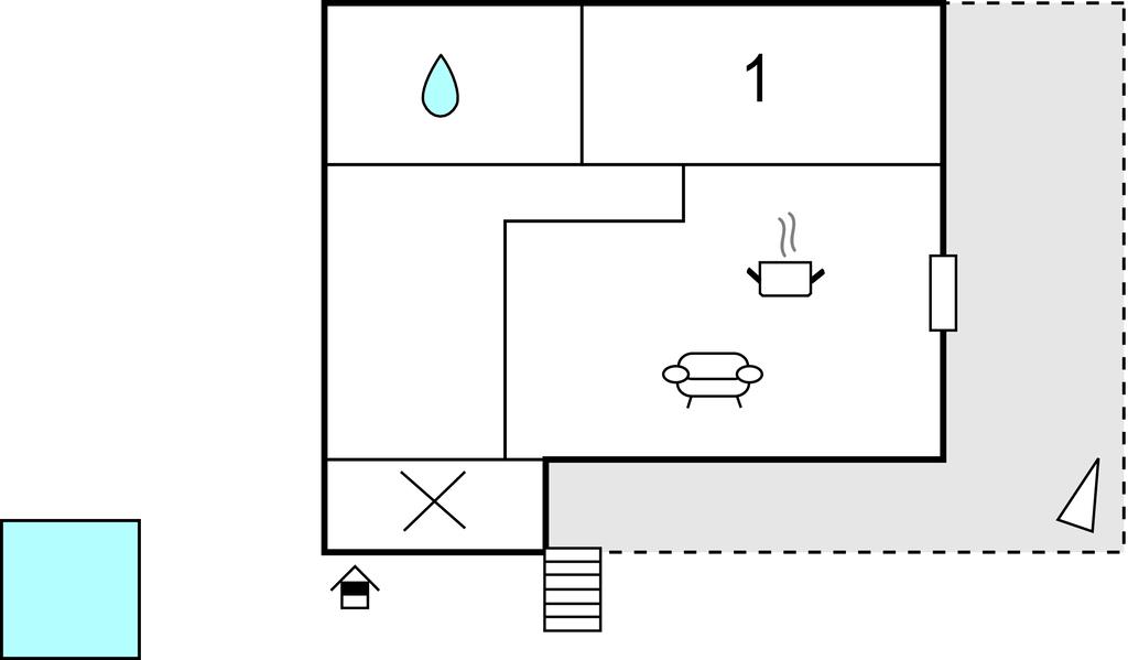 Komb. spisestue/køkken 25m2 - 2 Sovepladser. (Sofa, madras eller lignende).