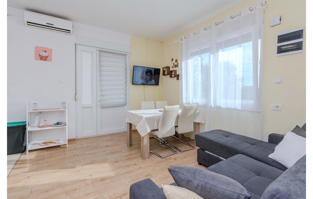 Denne familievenlige ferielejlighed i Zaton tilbyder jer alt, hvad I har brug for til en afslappende ferie. Huset rummer to lejligheder, som giver jer og jeres familie en kompakt og komfortabel indkvartering. Den hyggelige og funktionelle indretning gør, at I straks føler jer hjemme – det perfekte tilflugtssted efter en oplevelsesrig dag i området.