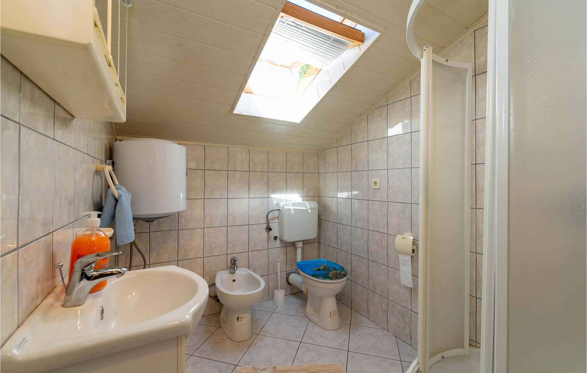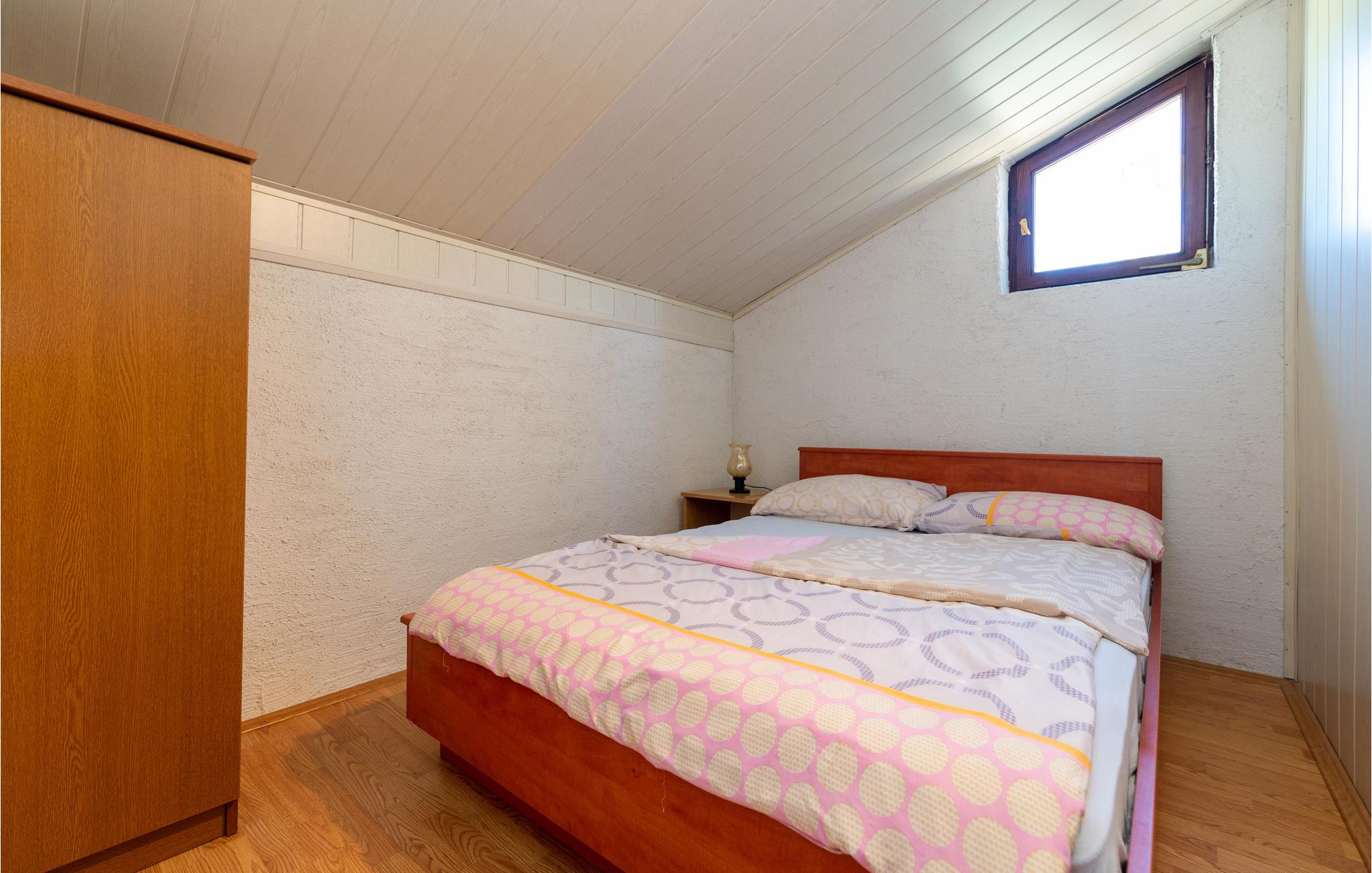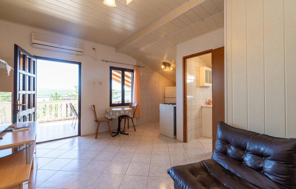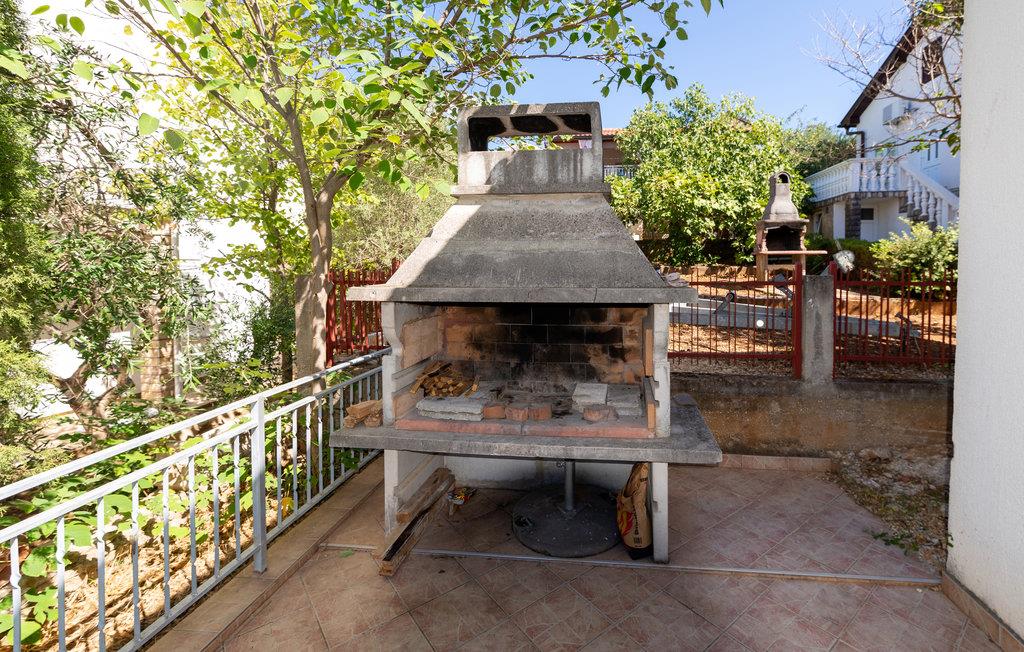 Denne praktiske ferielejlighed ligger på bygningens øverste etage og er en perfekt base til en badeferie i Kroatien. Her kan I slappe af efter jeres udflugter og strandture med grill i fælleshaven og måaske falde i snak med nogle af de andre feriegæster. Begynd dagene med en lækker morgenmad på balkonen og nyd udsigten til Karinsko More.