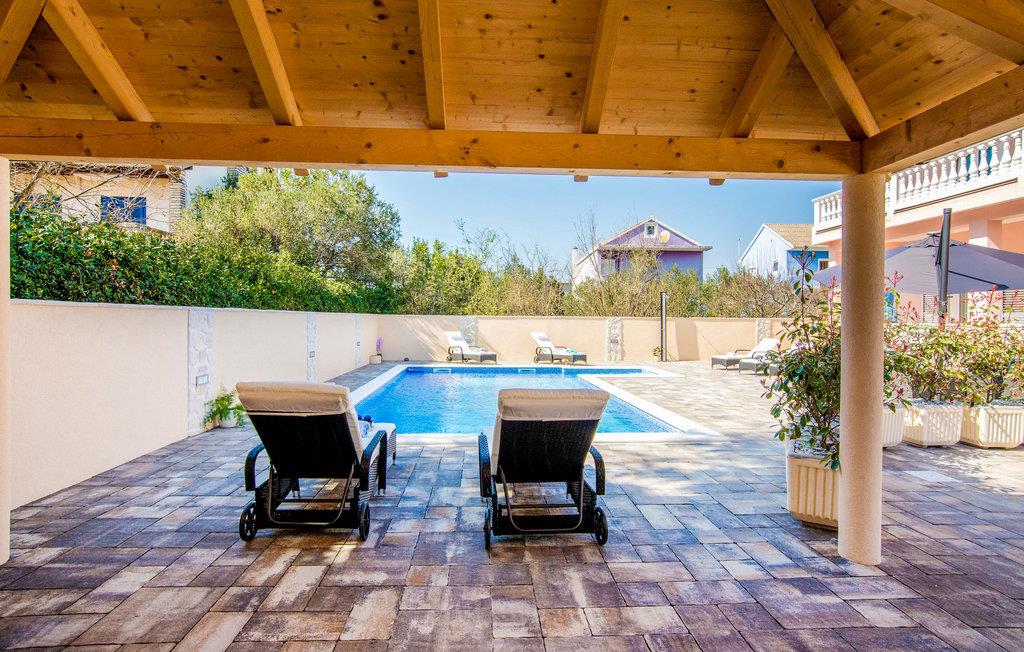 Hold jeres ferie i dette rummelige og elegante feriehus i den romantiske kystby Bibinje. Denne halvdel af et dobbelthus strækker sig over to etager og er forbundet med udendørs trapper. Til lejlighederne hører store terrasser hvor I kan nyde dagens første kop kaffe, og en swimmingpool som giver velkommen forfriskning på de dejlige varme sommerdage. Ved Bibinje ligger skønne strande med mange bekvemmeligheder og ved den nærliggende marina kan I tage på dykkerkurser, eller endagsture i båd. Kombinationen af strand og nærheden til kulturmetropolen Zadar med sine både moderne og historiske seværdigheder, fx den gamle bydel og de moderne installationer: havorgelet og hilsen til solen, samt mange andre tiltrækkende udflugtsmuligheder gør den lille ferieby til et elsket rejsemål.